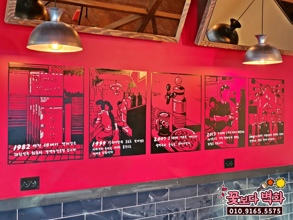 한 눈에 쏙 들어오는 일러스트 느낌의 역전할머니맥주 역사벽화!