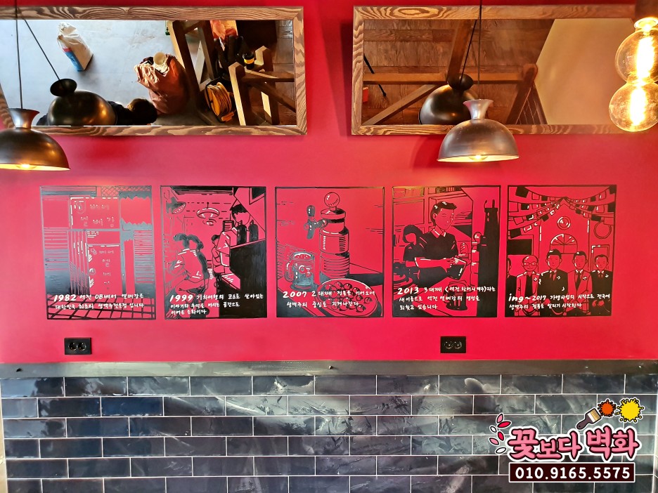 합리적인 비용에 짧은 인테리어 시공기간이 큰 장점인 벽화로 매장을 꾸며보세요^^