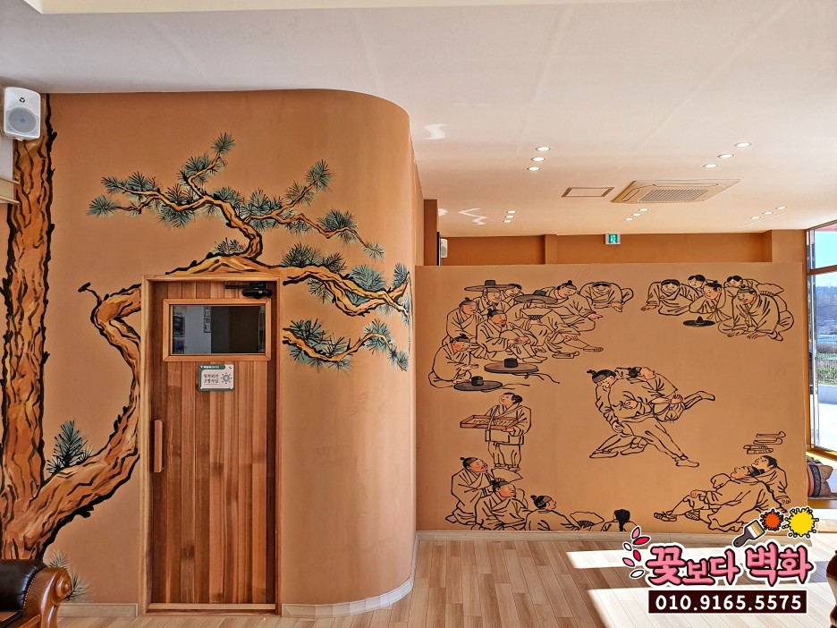 벽화로 인해 찜질방 인테리어의 정점을 찍었습니다.