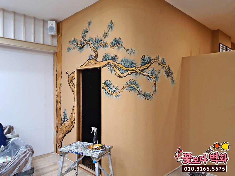 소나무가 그려지고있는 벽면 바로 옆쪽에는