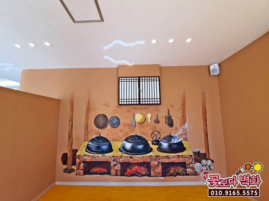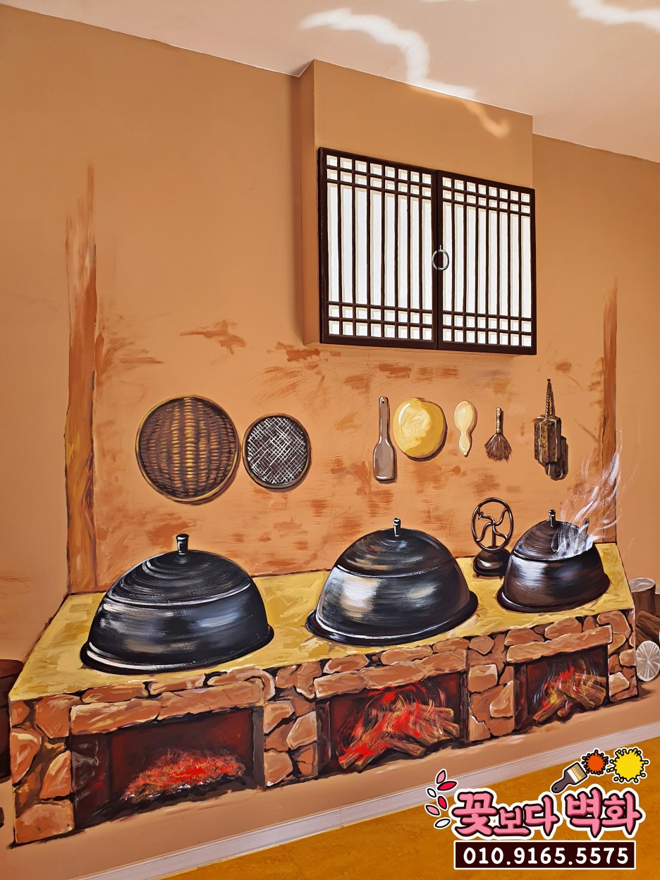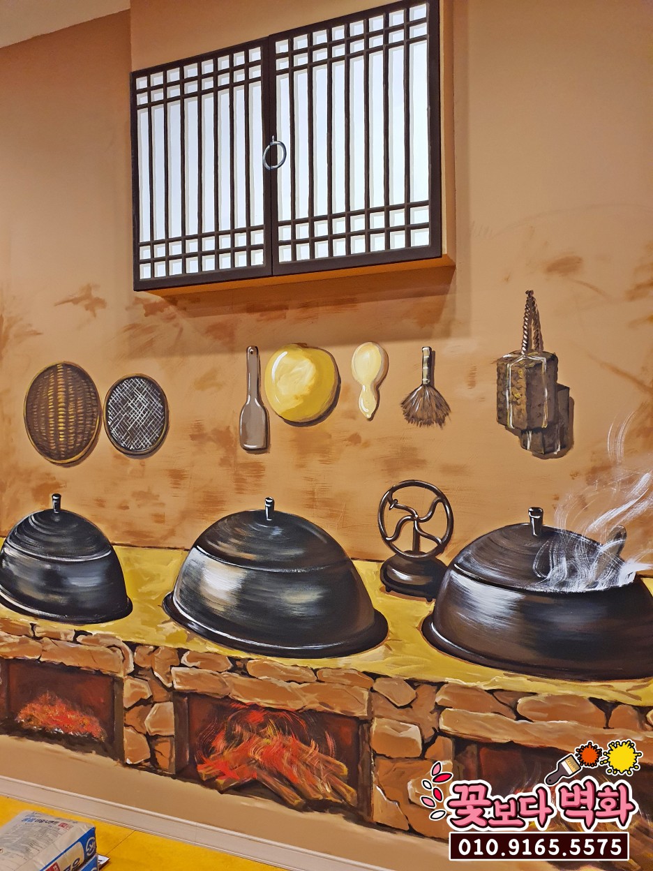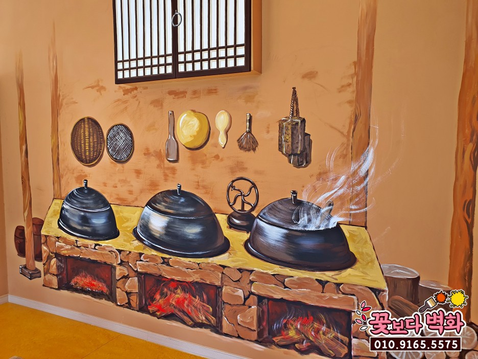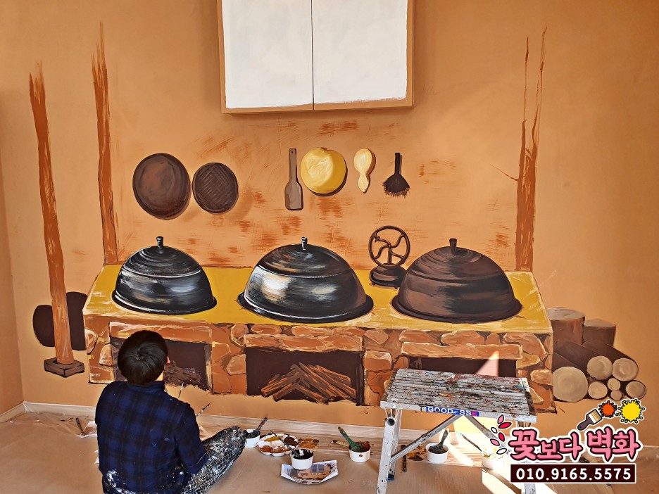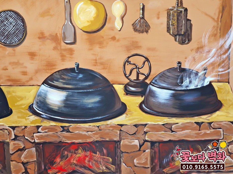 부뚜막과 솥단지의 질감표현이 인상적인 포인트벽화 !