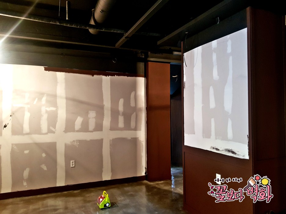 룸쪽의 빈 벽면은 깔끔하게 로고벽화로 그려드렸어요~