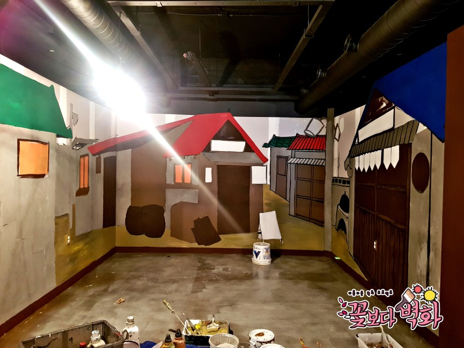 그림으로 거의 모든 벽면을 채웠던 현장이예요 ㅎㅎㅎ