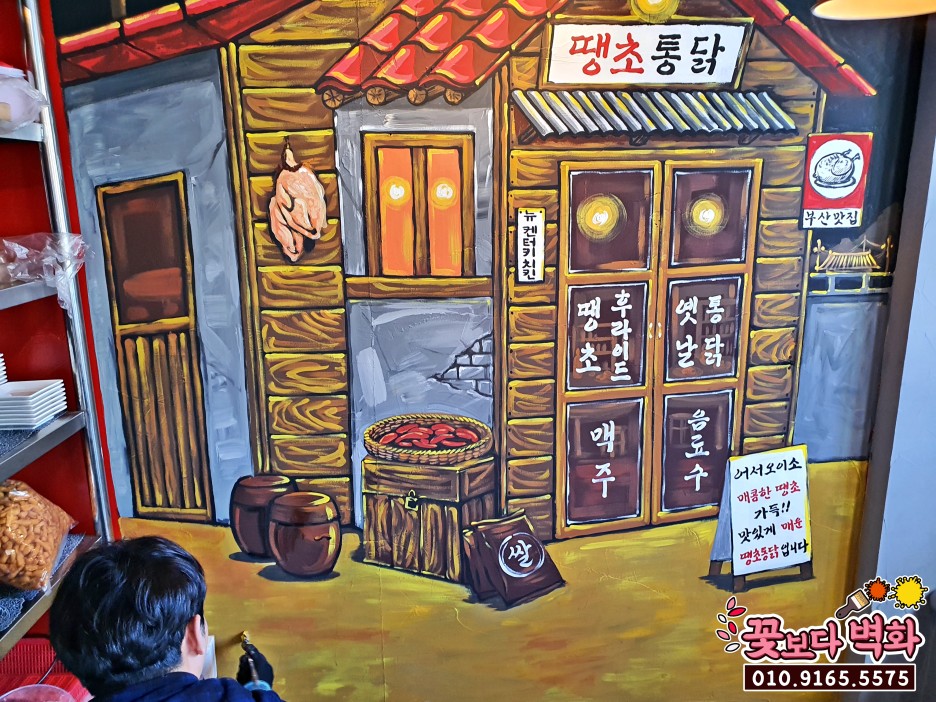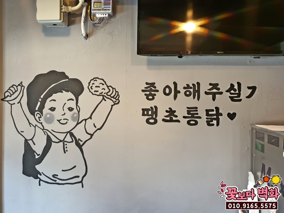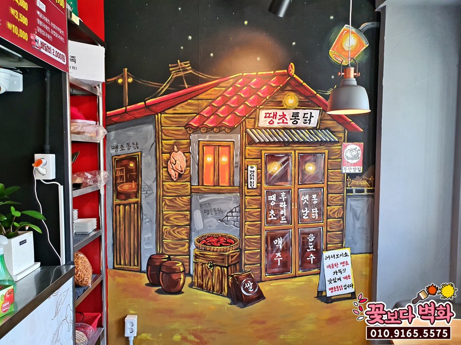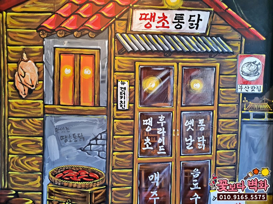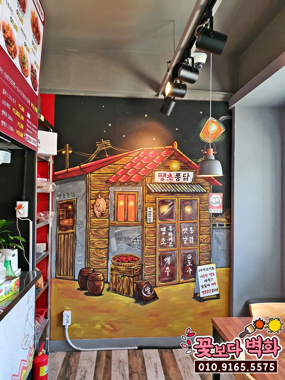 반대쪽 벽면에는 포인트벽화 로 땡초통닭에