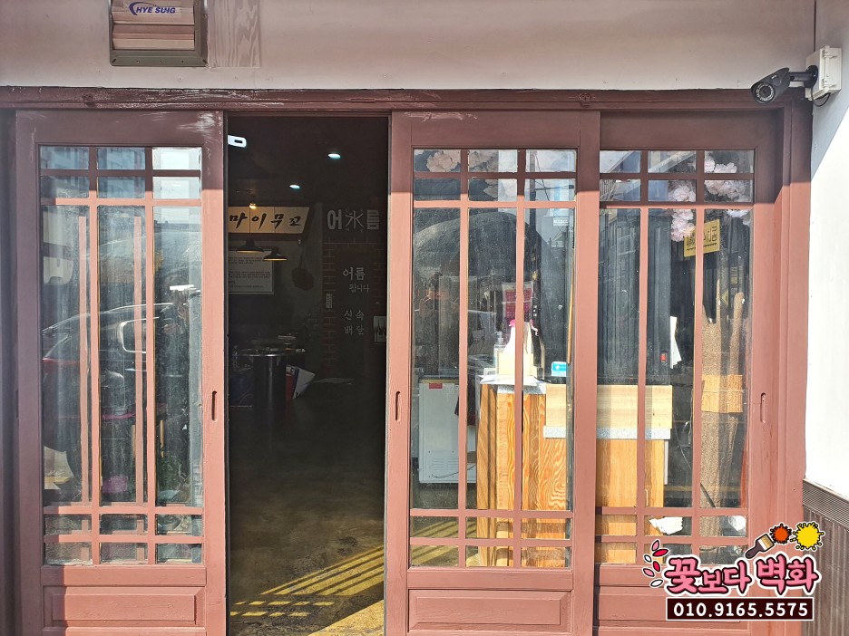 나무 문으로 바뀌어 내부 복고벽화 와도 너무 잘 어울리네요~
