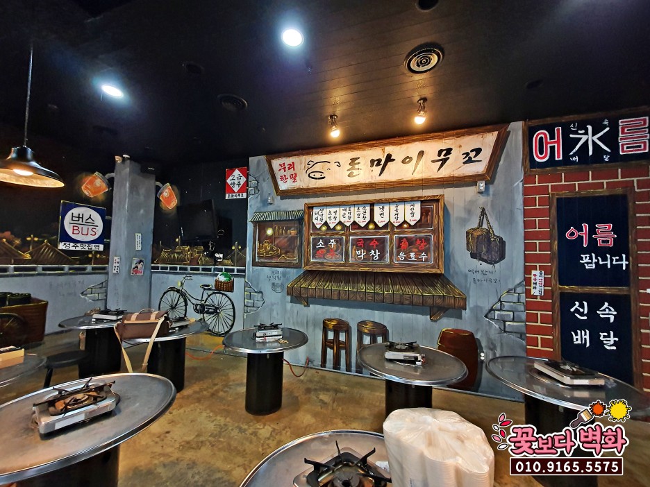 합리적인 비용에 짧은 인테리어 시공기간이 큰 장점인 벽화로 매장을 꾸며보세요^^
