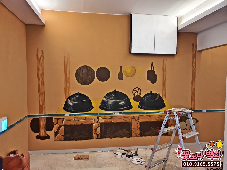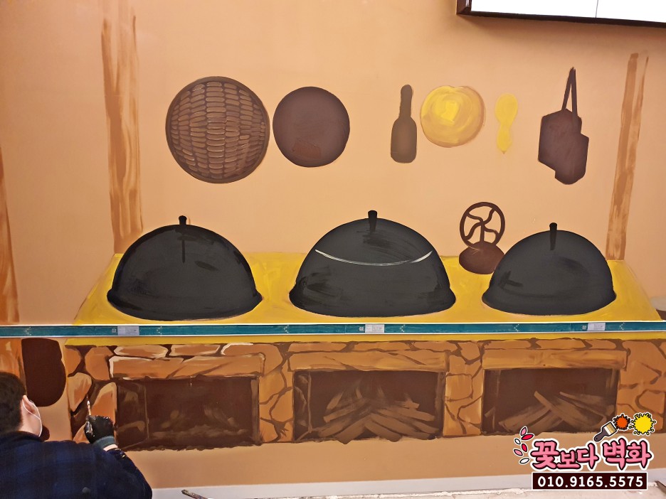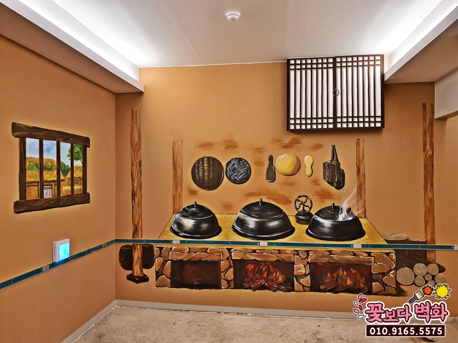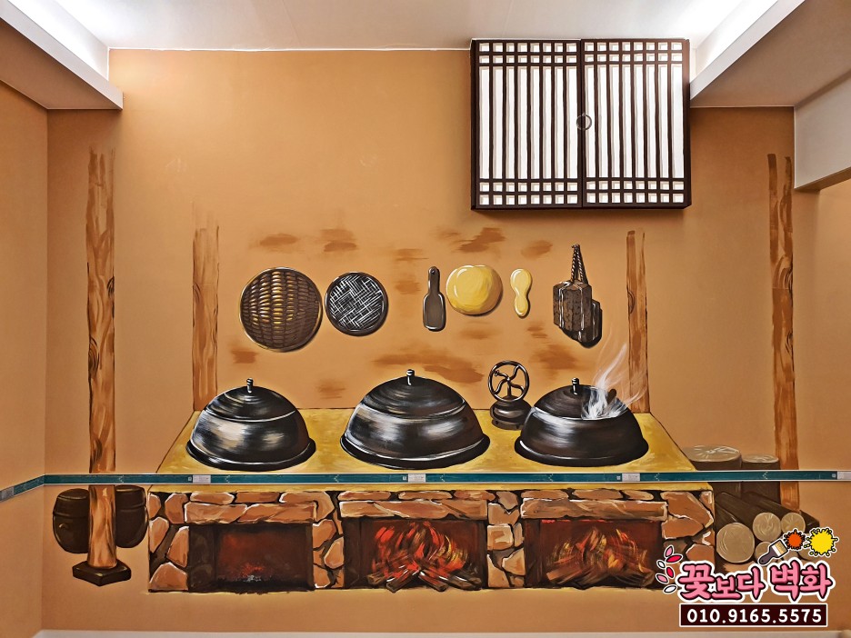부뚜막과 솥단지의 질감표현이 인상적인 포인트벽화 !