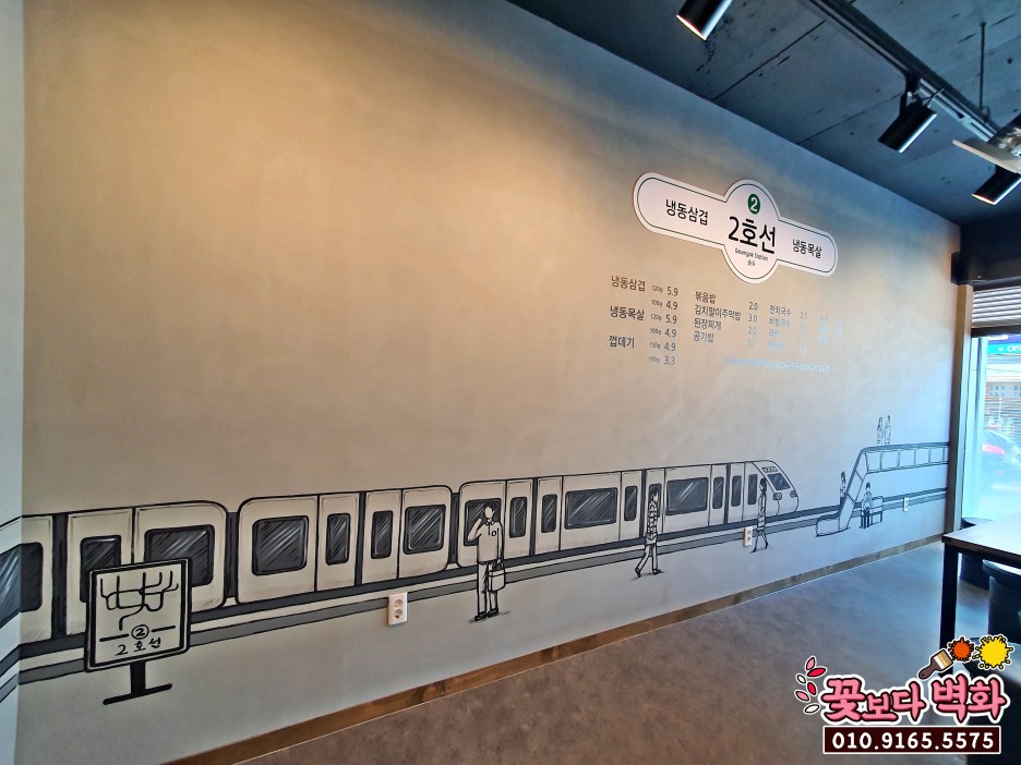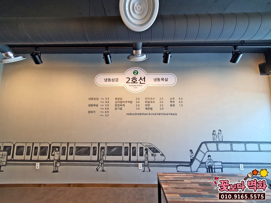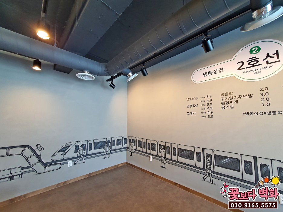 부산 금곡동에 위치한 고깃집 2호선 벽화 를 소개해드릴까합니다.