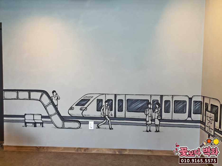 휑했던 벽면에 이렇게 벽화 로 깔끔한 지하철역 풍경이
