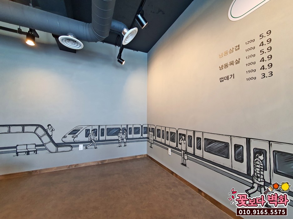 합리적인 비용에 짧은 인테리어 시공기간이 큰 장점인 벽화로 매장을 꾸며보세요^^
