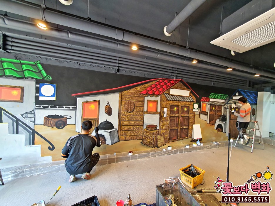 양쪽 벽면 다 벽화가 들어갈거에요.