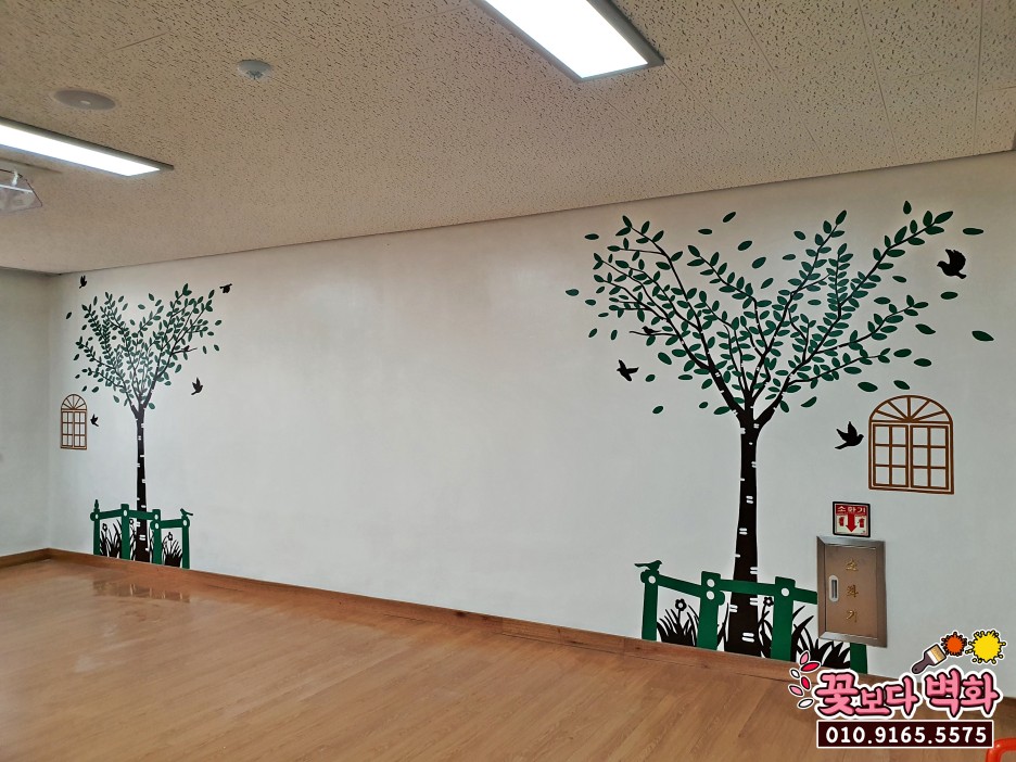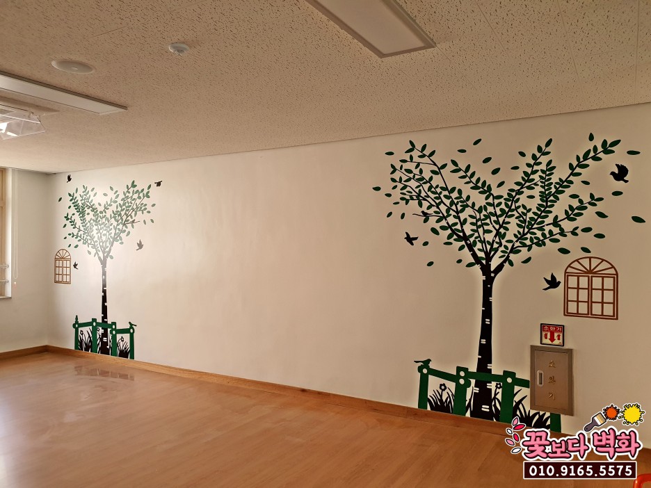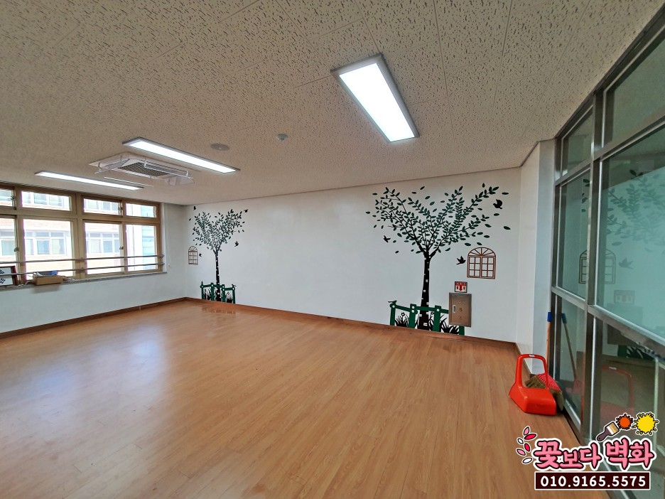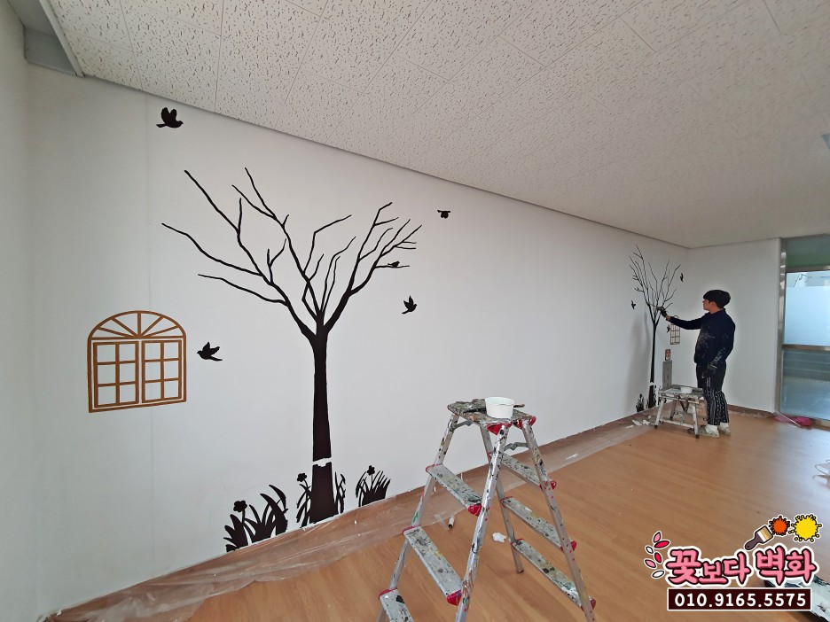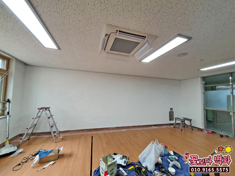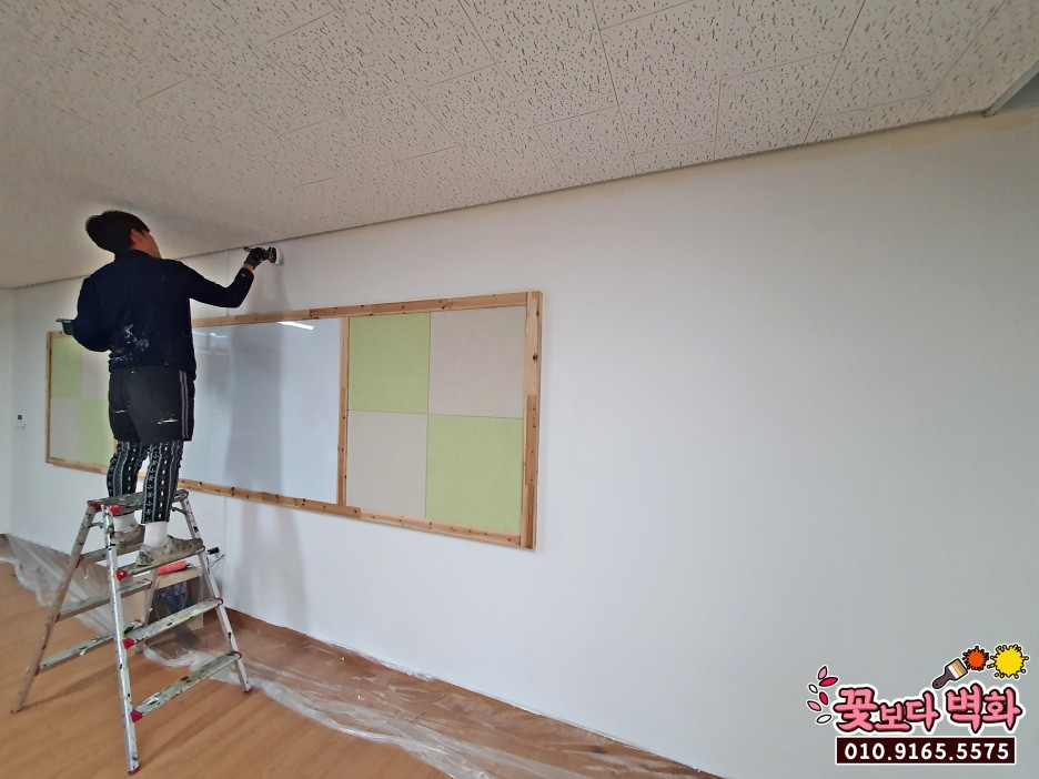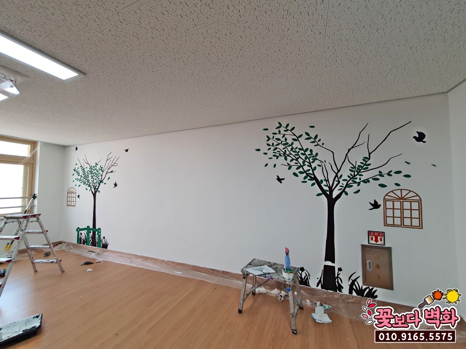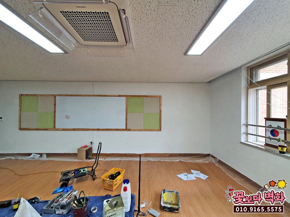 교실하나를 회의실로 바꾸면서 벽면도색과 벽화 를 의뢰해주셔서