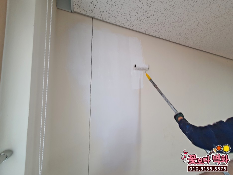 롤러가 닿지않는 위쪽부분까지 깔끔하게 작업중인 꽃보다벽화