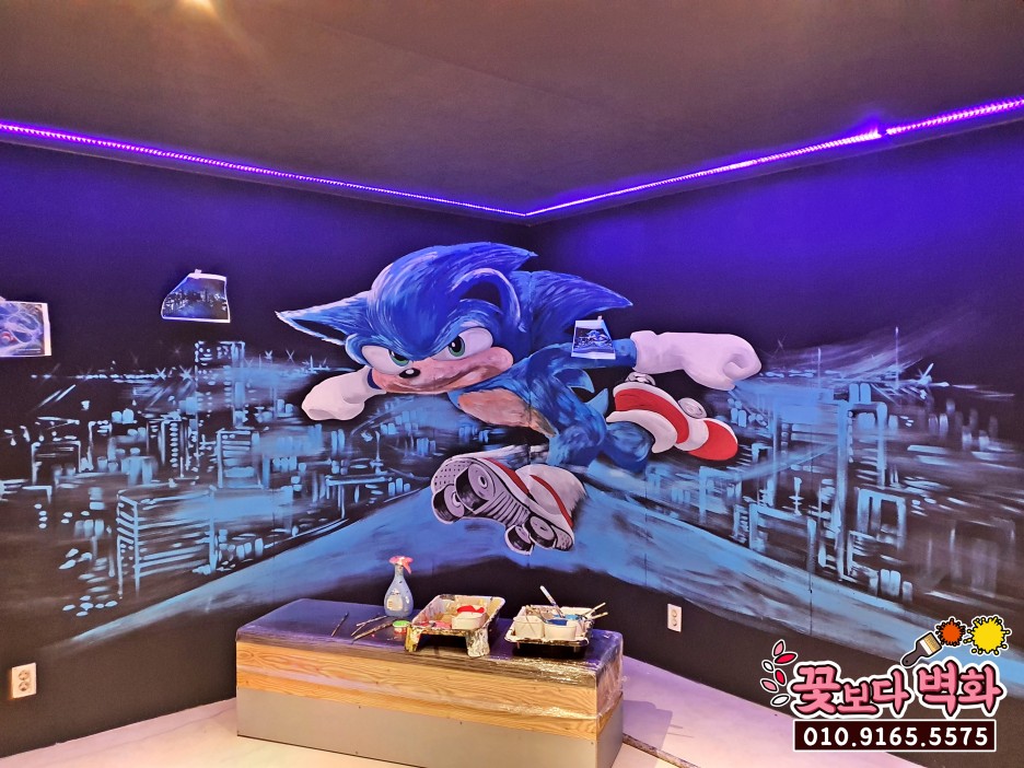사장님께서 씽씽달리는 캐릭터인 소닉을 테마로 잡고 싶어하셨는데요~~