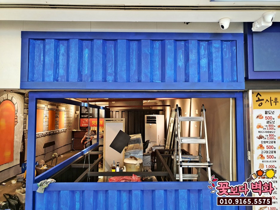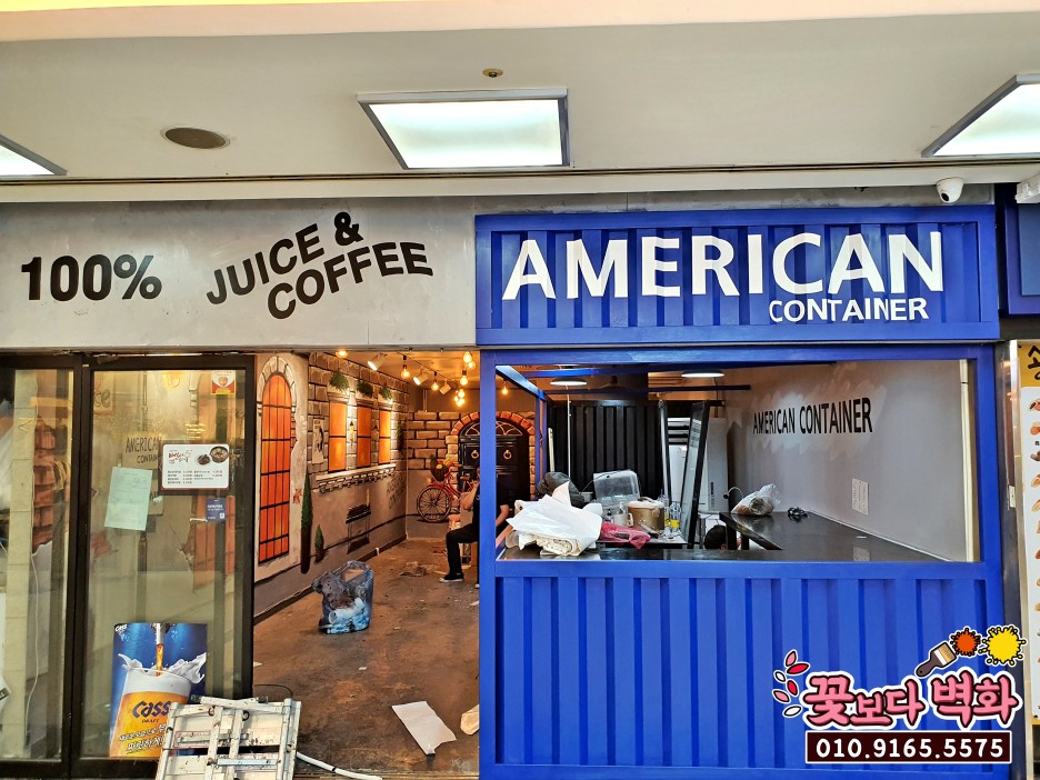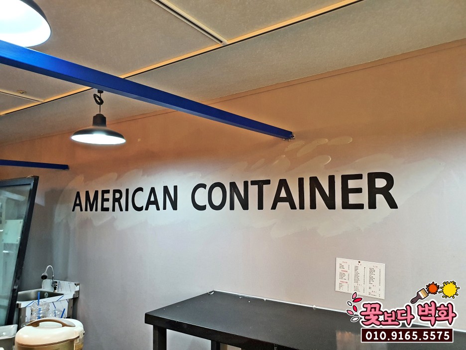 밑색이 잘 발려진 컨테이너 간판 부분에는