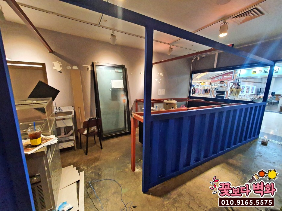 바깥 간판쪽에도 파랑색으로 칠해지고있습니다.