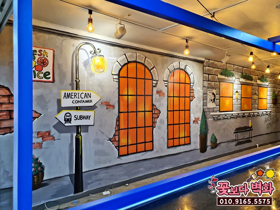 합리적인 비용에 짧은 인테리어 시공기간이 큰 장점인 벽화로 매장을 꾸며보세요^^