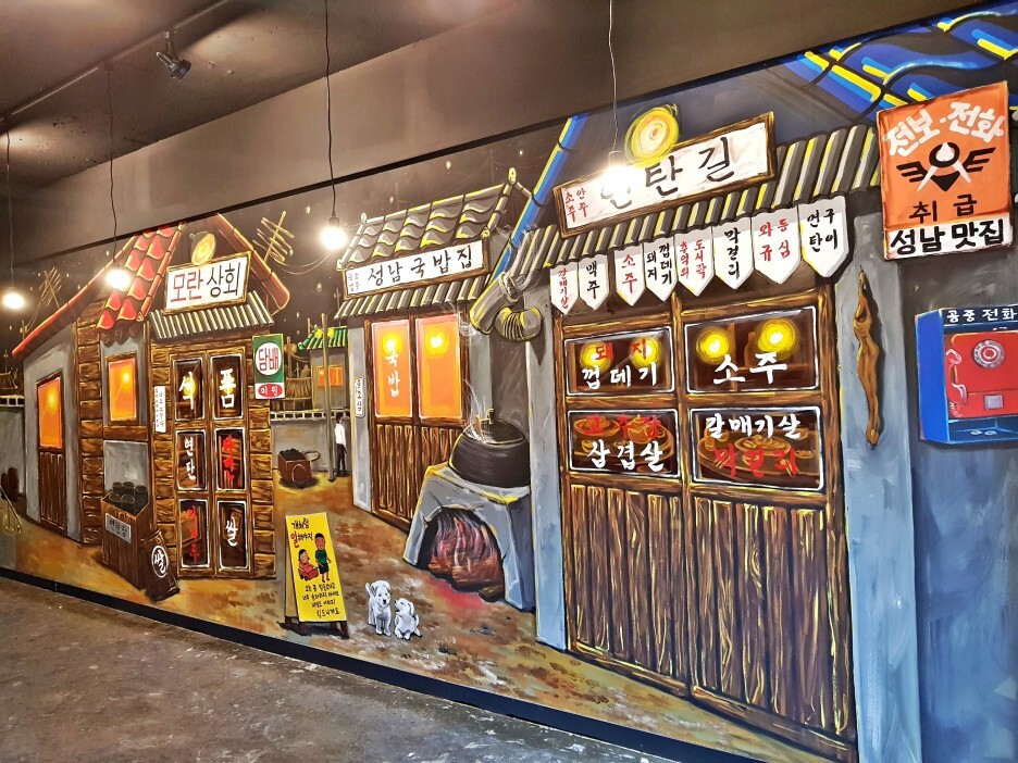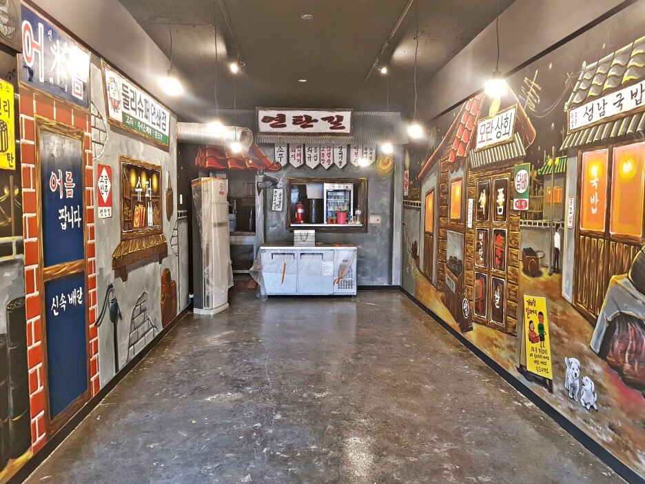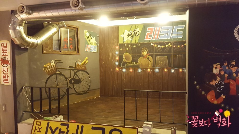 오른쪽 벽면에 복고거리가 그려졌습니다.