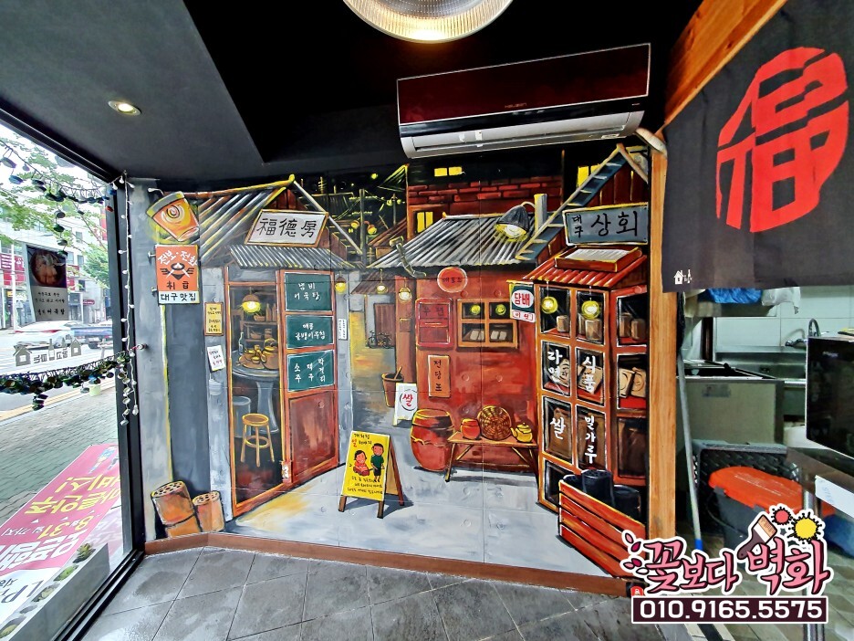 합리적인 비용에 짧은 인테리어 시공기간이 큰 장점인 벽화로 매장을 꾸며보세요^^