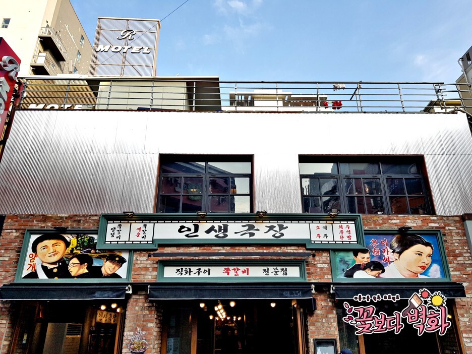 꽃보다벽화 가 그린 복고간판이 걸린 모습입니다.