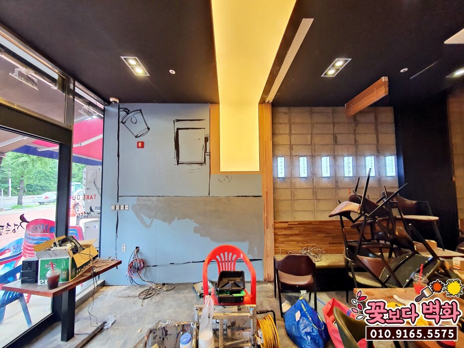 합리적인 비용에 짧은 인테리어 시공기간이 큰 장점인 벽화로 매장을 꾸며보세요^^