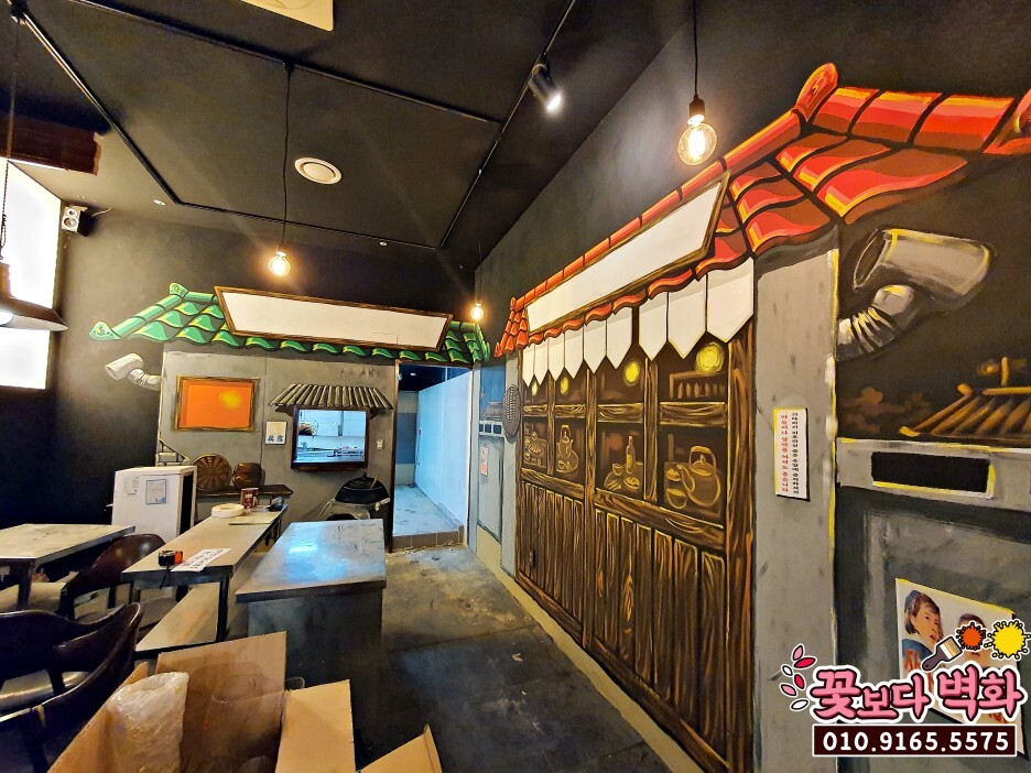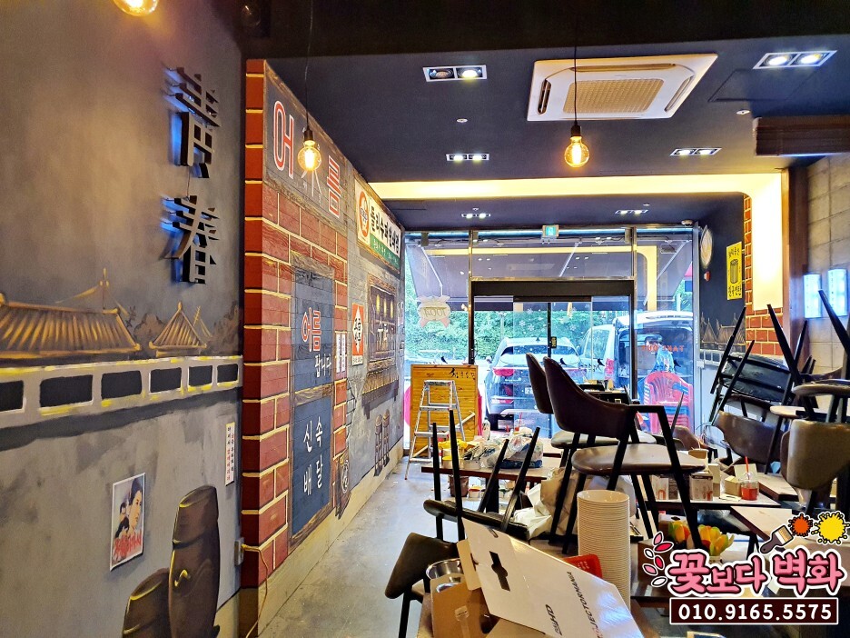 합리적인 비용에 짧은 인테리어 시공기간이 큰 장점인 벽화로 매장을 꾸며보세요^^