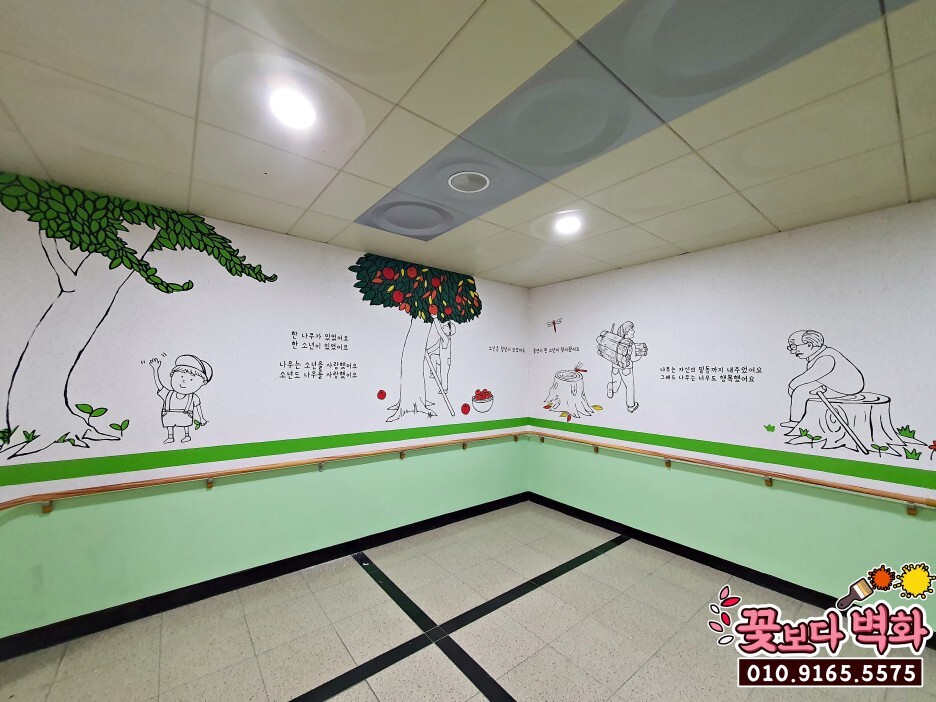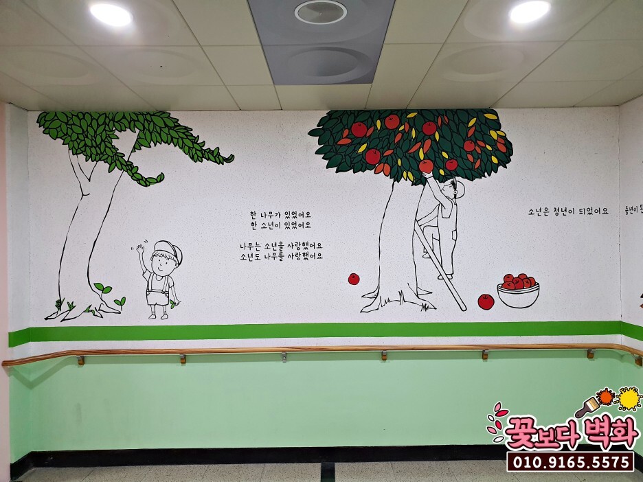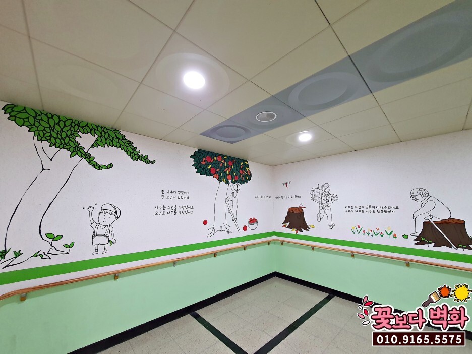왼쪽 벽면에는 아낌없이 주는 나무 동화 속 장면들과,