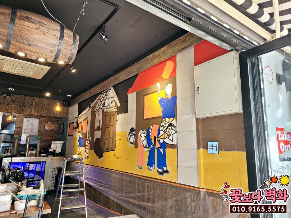 기존에 하던 맥주집에서 업종변경을 하는 거라 가게 벽면에 그대로 벽화 가 들어갈거에요~
