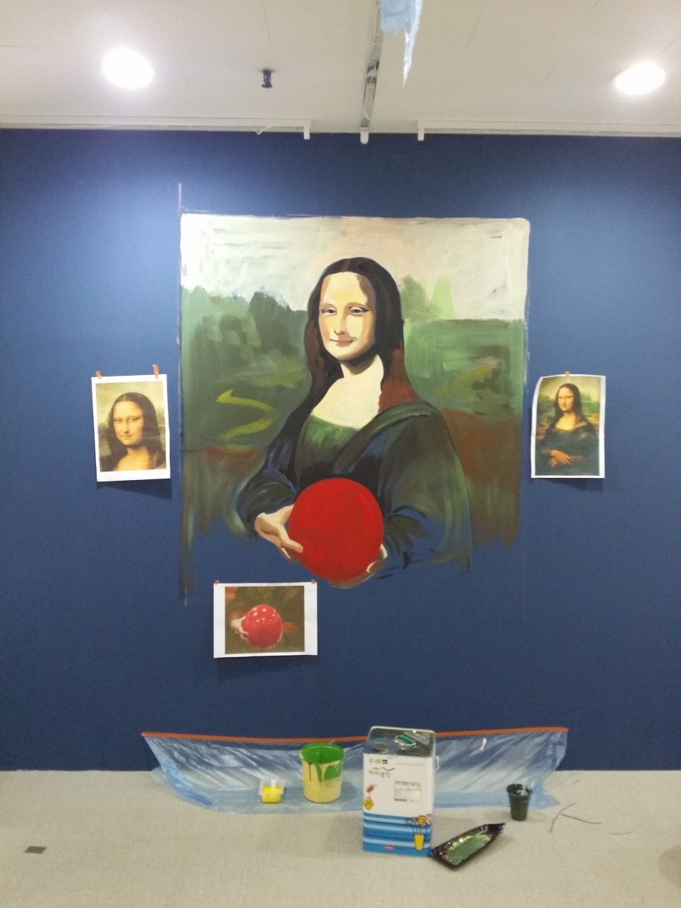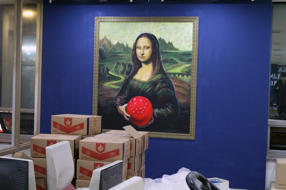 이 벽면에는 볼링핀을 쥐고 있는 모나리자가 그려지고있습니다.