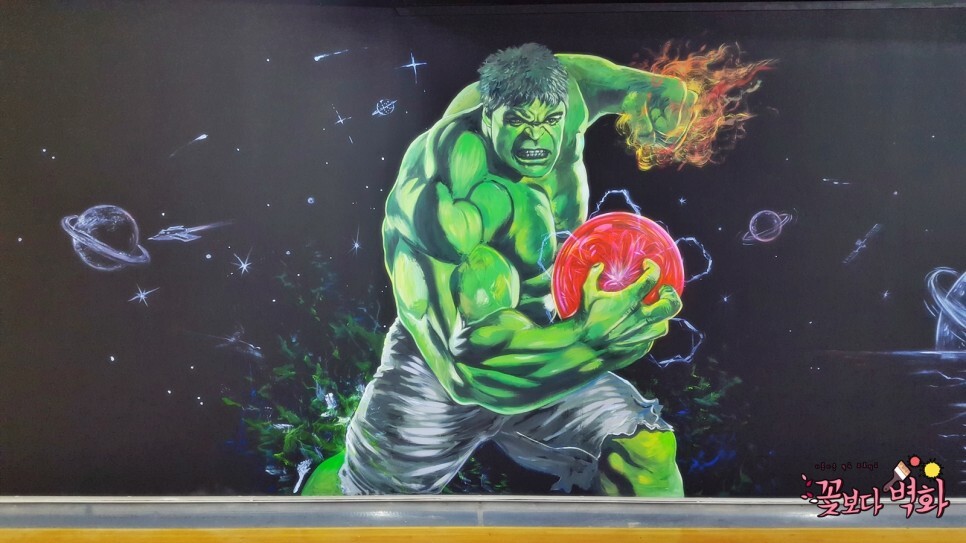 어벤져스 캐릭터를 큼지막하게 넣어 시선강탈하는 벽화 입니다 :)