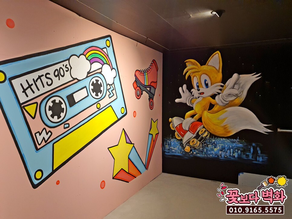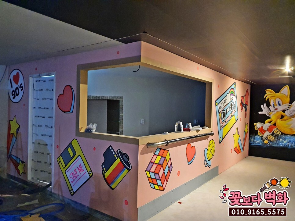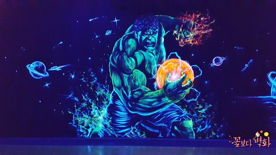 캐릭터 뿐만 아니라 문구에도 형광벽화 로 작업을 하니 정말 강렬하고 매력적인 모습을 보실 수 있습니다.