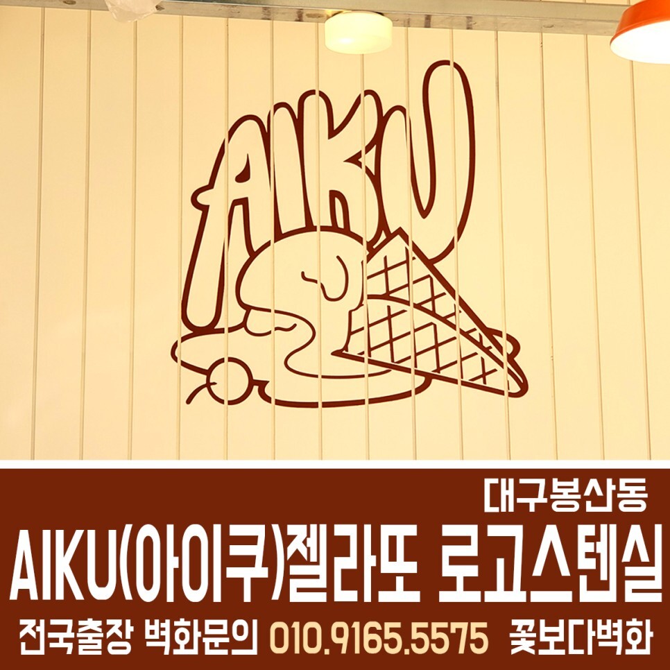 AIKU(아이쿠) 로고 스텐실 벽화.