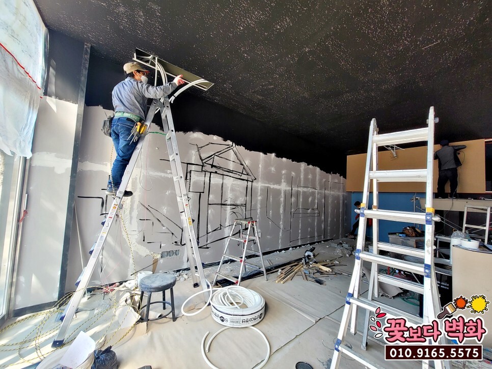 벽화작업일정에 맞추다보니 사장님의 배려로 여러공정이랑 같이 작업을 하게되었어요