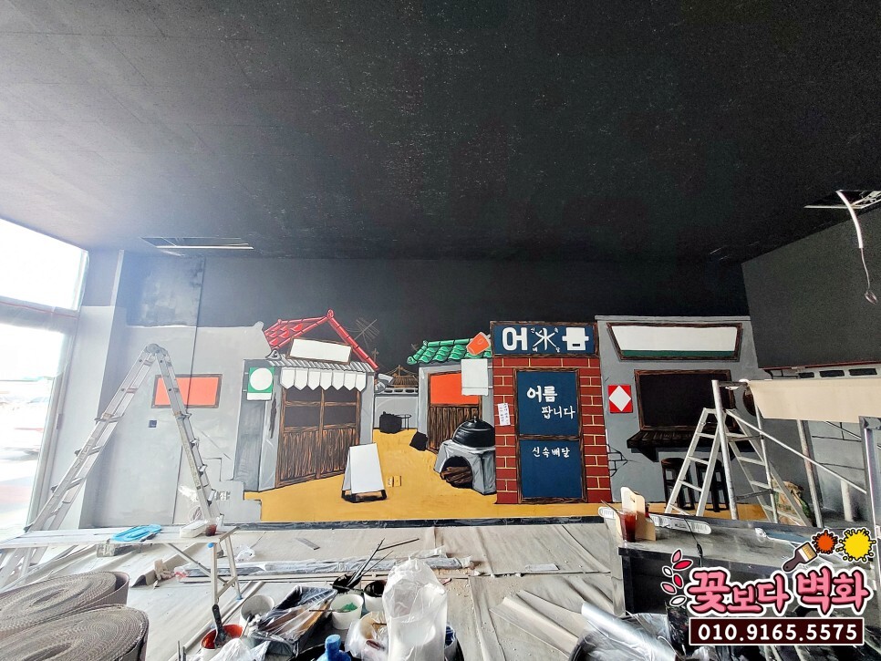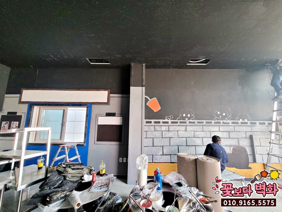 합리적인 비용에 짧은 인테리어 시공기간이 큰 장점인 벽화로 매장을 꾸며보세요^^