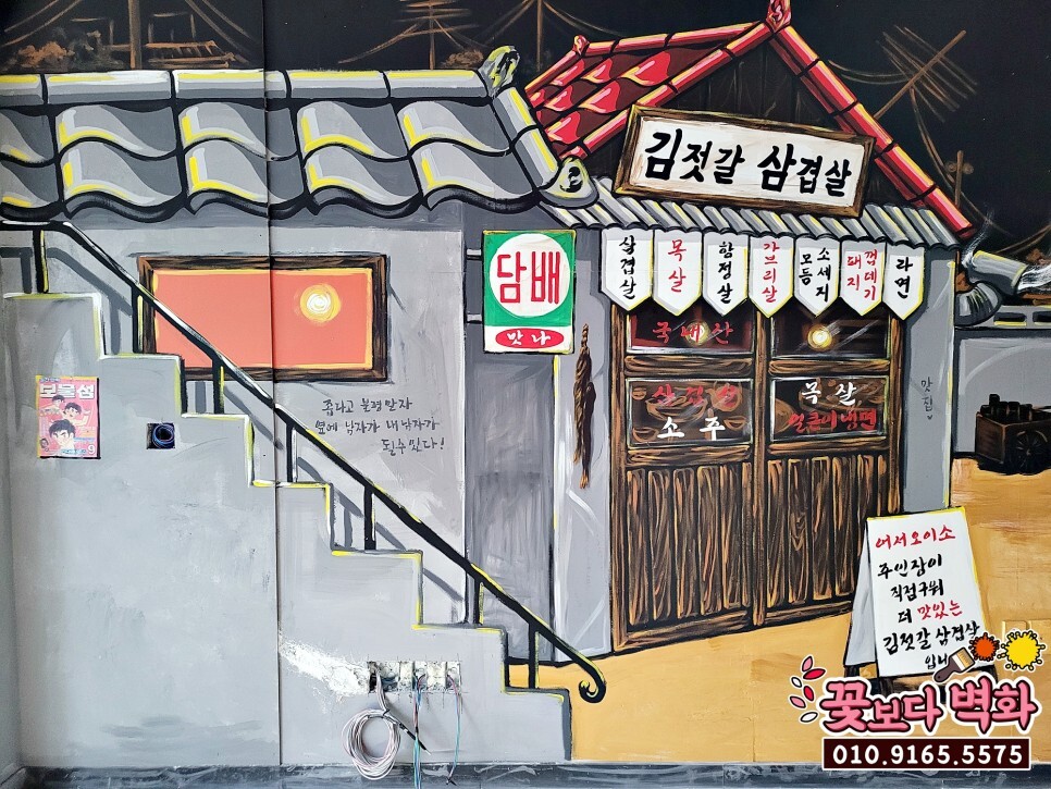 왜관에 위치한 김젓갈삼겹살 복고풍 인테리어벽화!