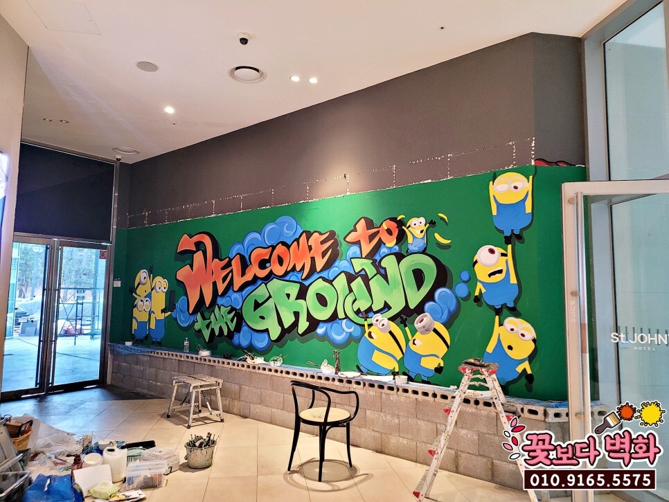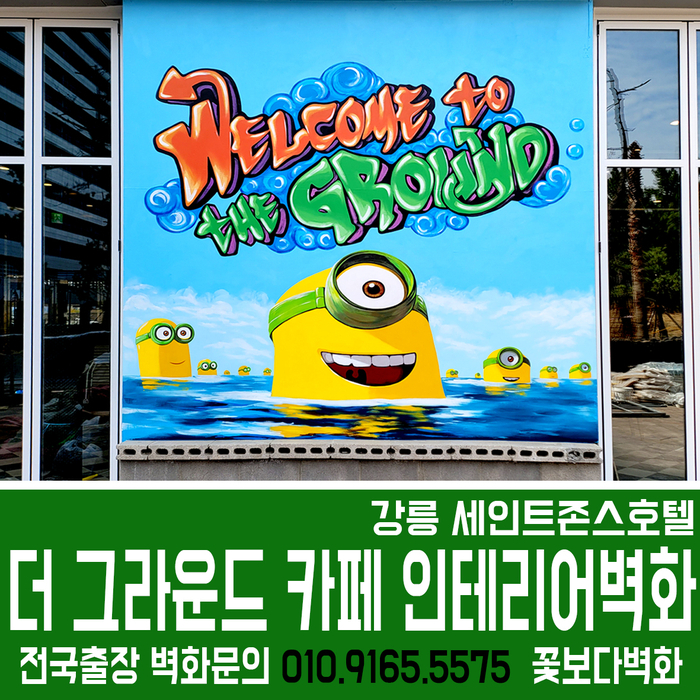 이번 세인트존스호텔 더그라운드 카페 로고 그래피티, 미니언즈 캐릭터 벽화