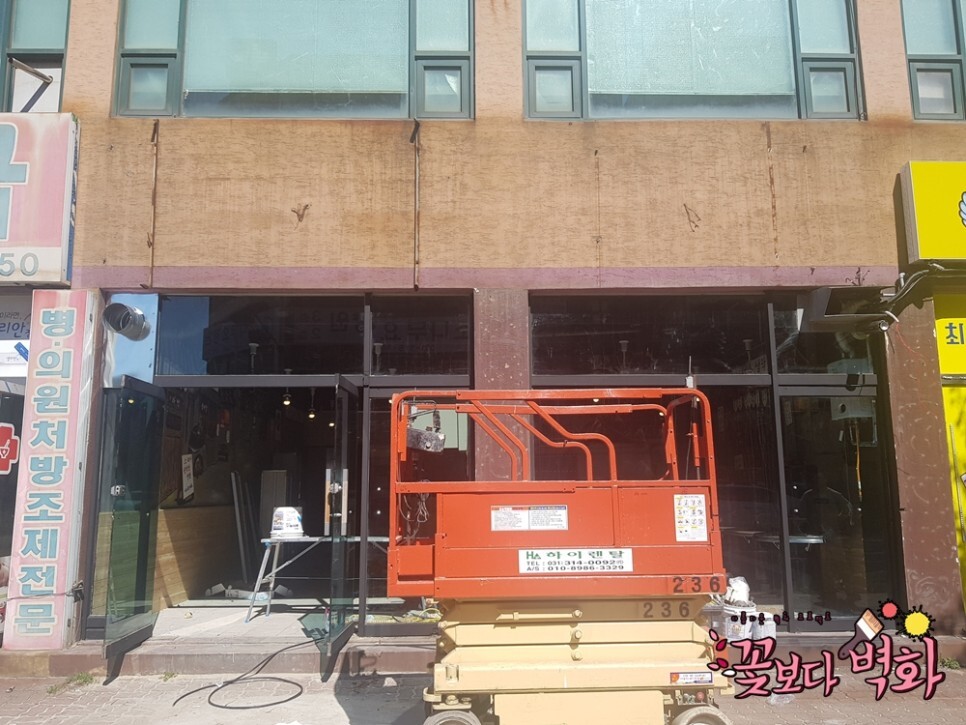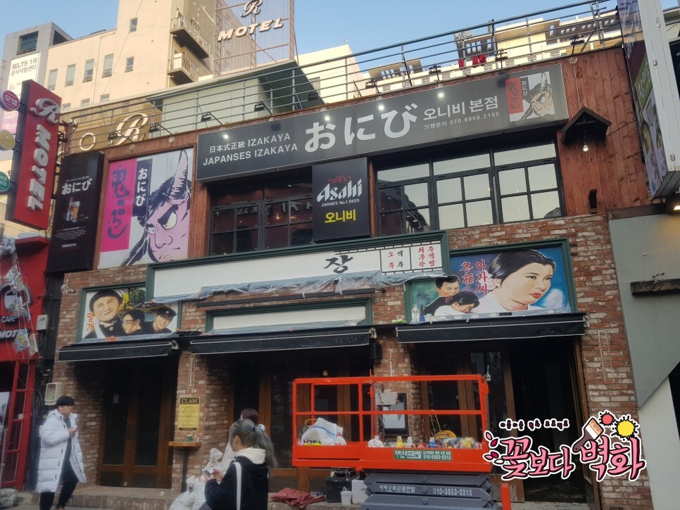 높은 간판 위치에도 리프트를 타고 쓱싹쓱싹 그리는 꽃보다벽화