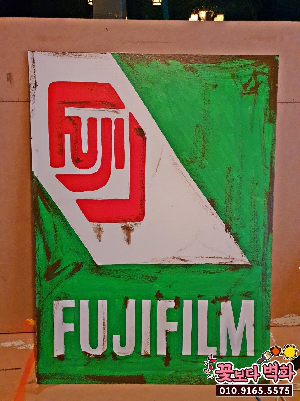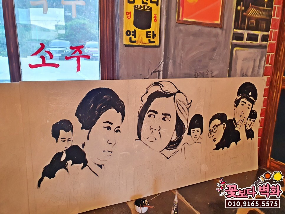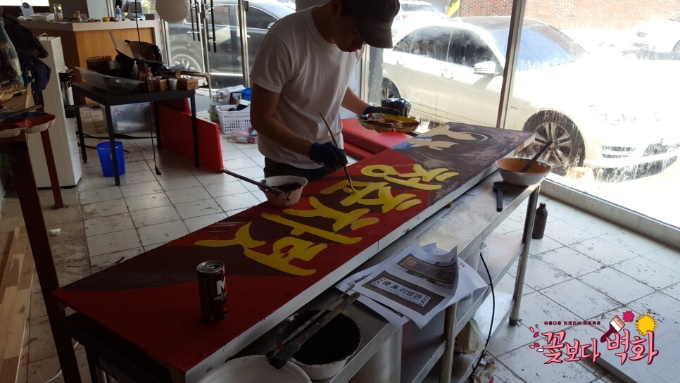 기존의 간판 위에 그림그리기가 불가능할경우 이렇게 그려서 부착하는 방식도 괜찮겠죠?
