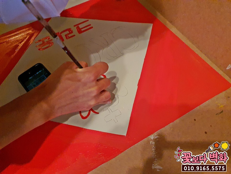 지금 보시는 간판은 직접 디자인한 시안을 내부 외부 간판에 직접 그리는 모습이구요~