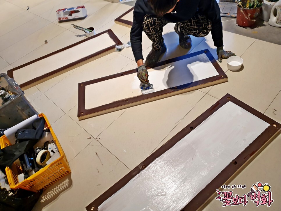 이렇게 준비된 나무 합판에 작업이 바로 진행이 됩니다.
