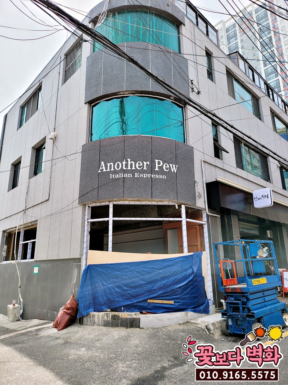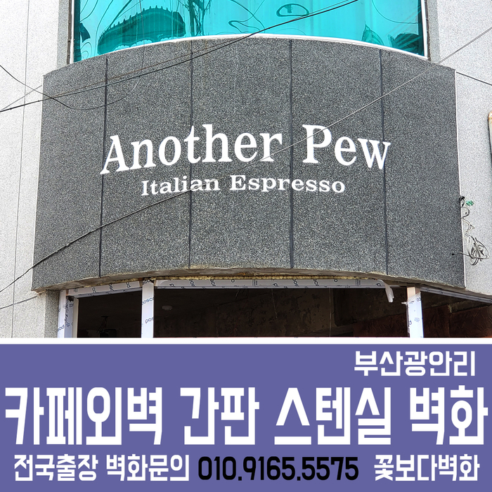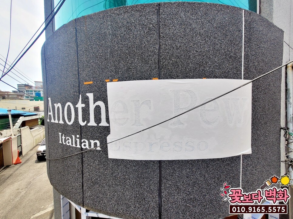 부산광안동에 위치한 어나더 퓨 카페에 건물 외벽을 그대로살린 스텐실 간판벽화를 소개해드리겠습니다.