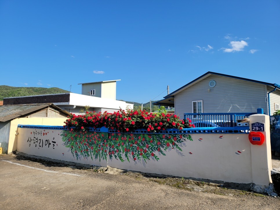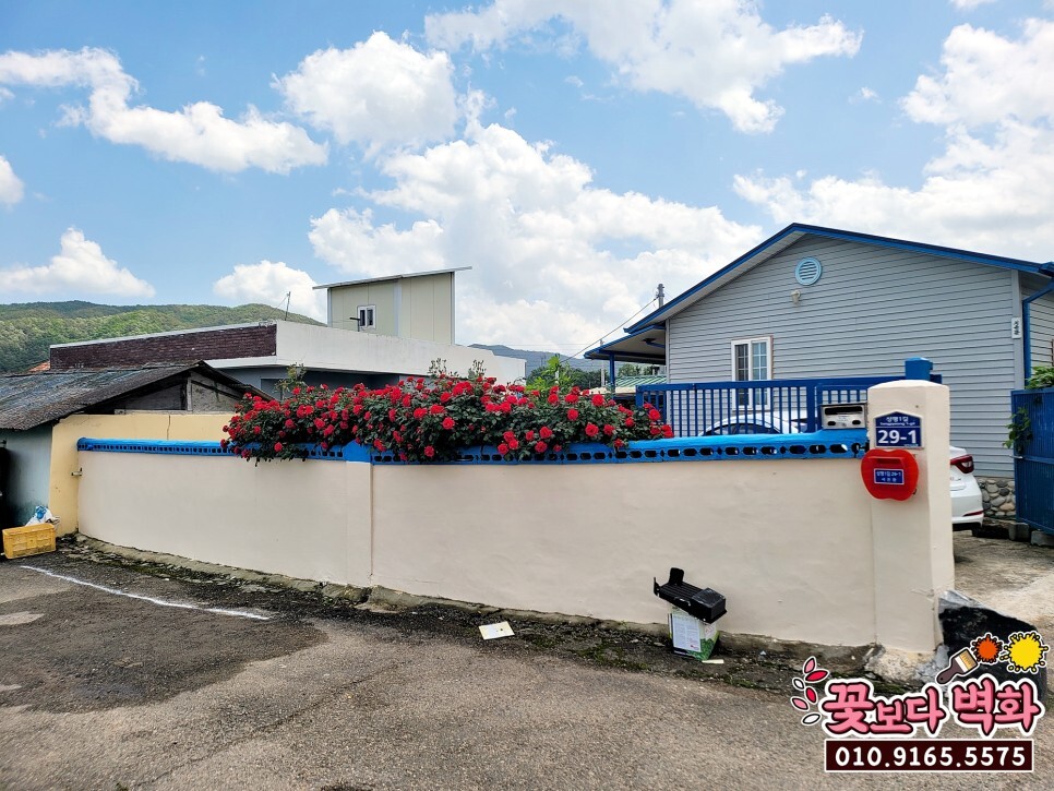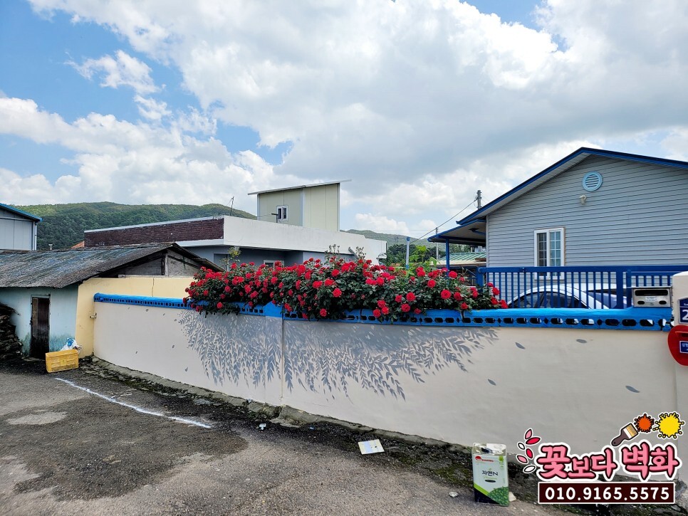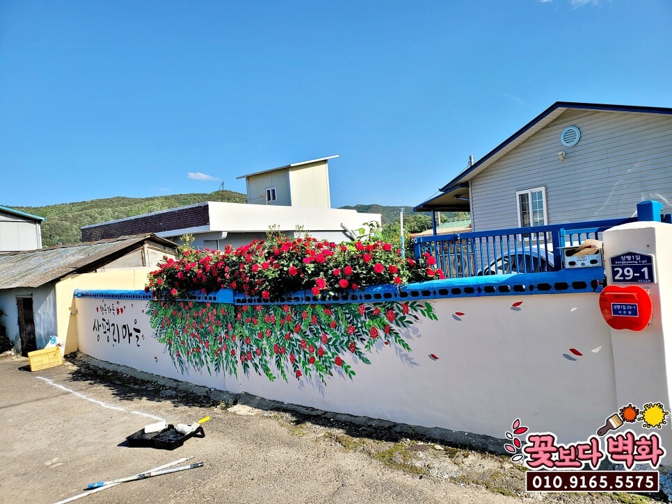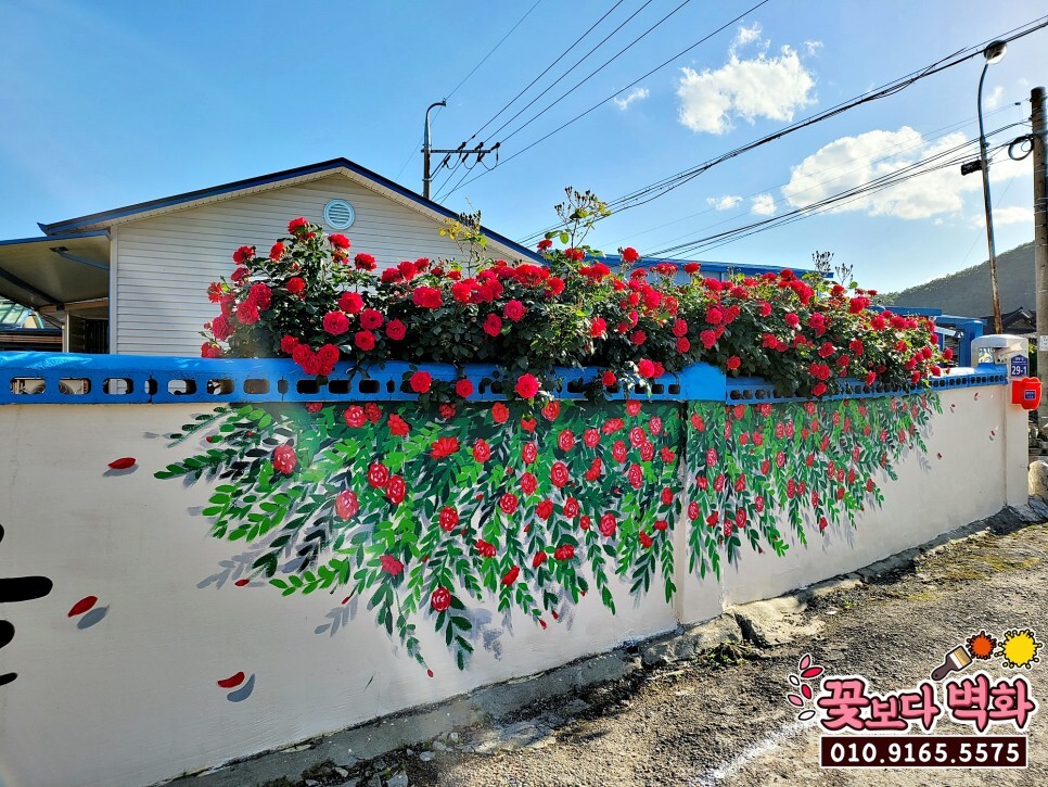 왼쪽으로는 문구 오른쪽으로는 예쁜 장미꽃이 그려지니 담벼락이 가득 차 보이고