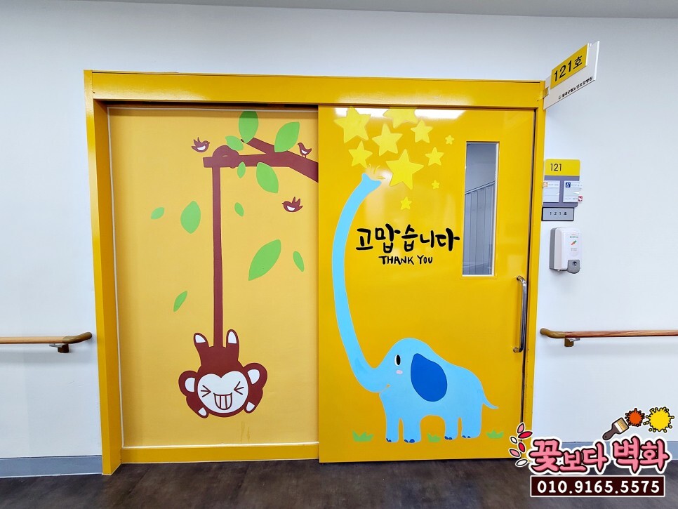 다음 두 번째 병실 문에는 귀여운 원숭이와 코끼리로 꾸며지고 있습니다.