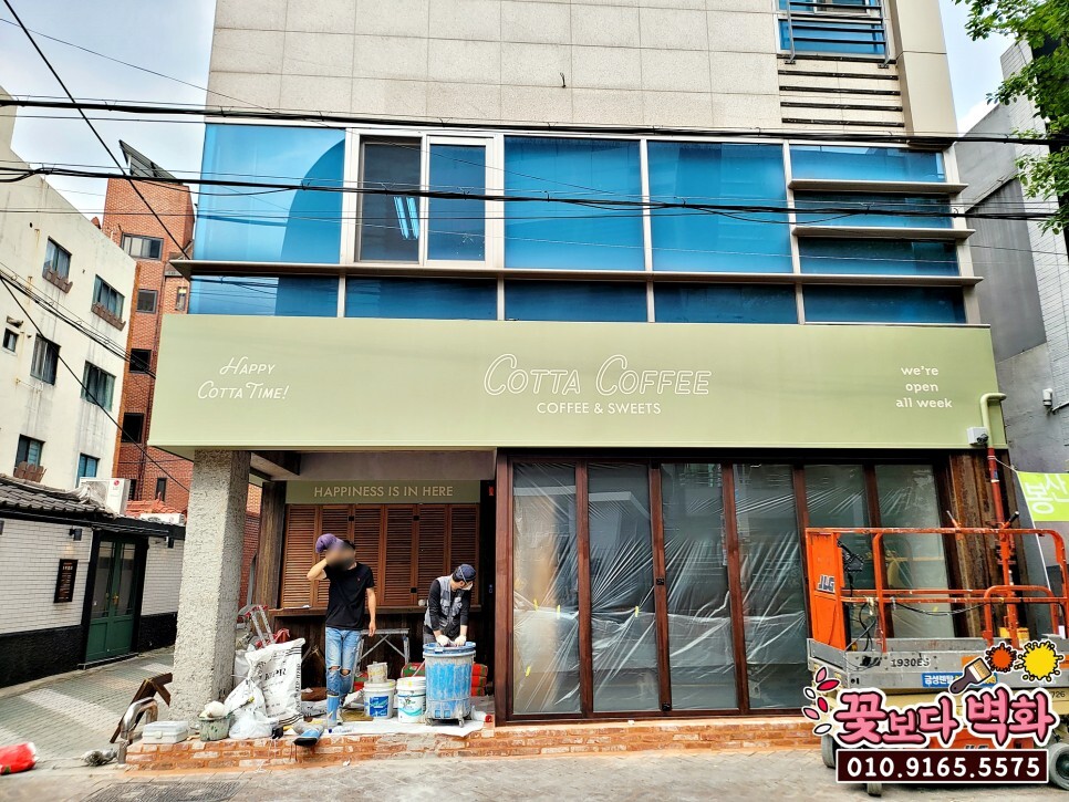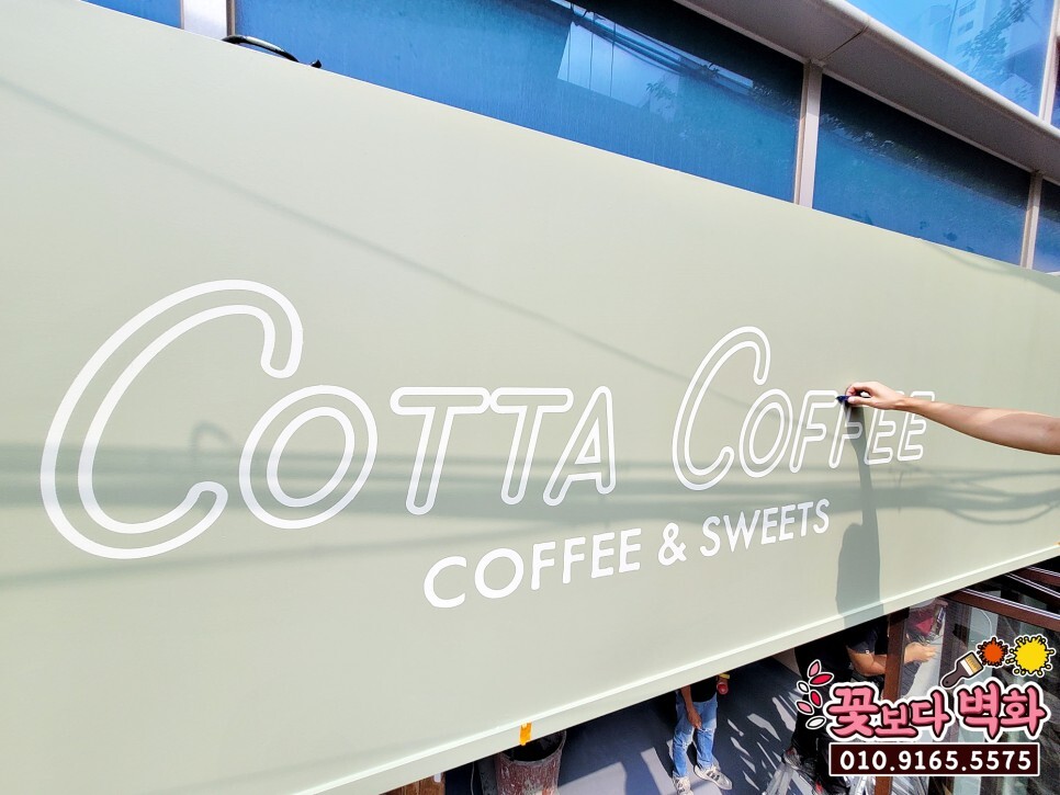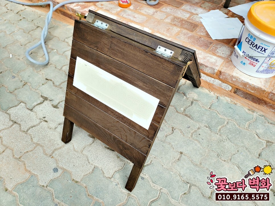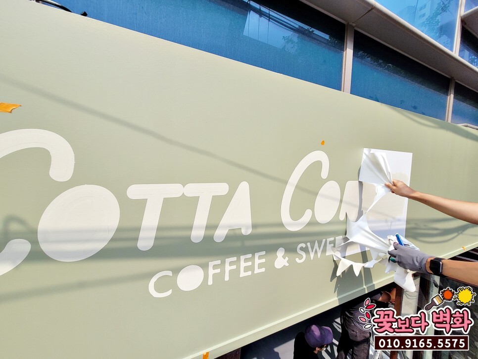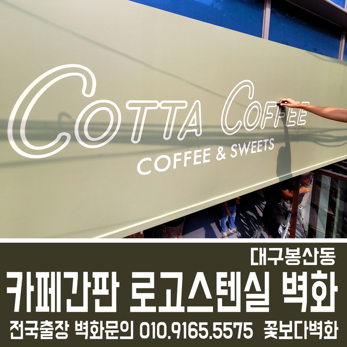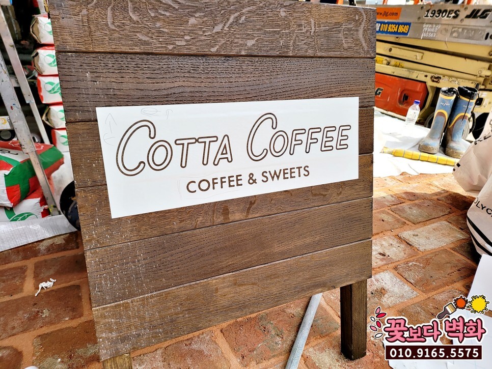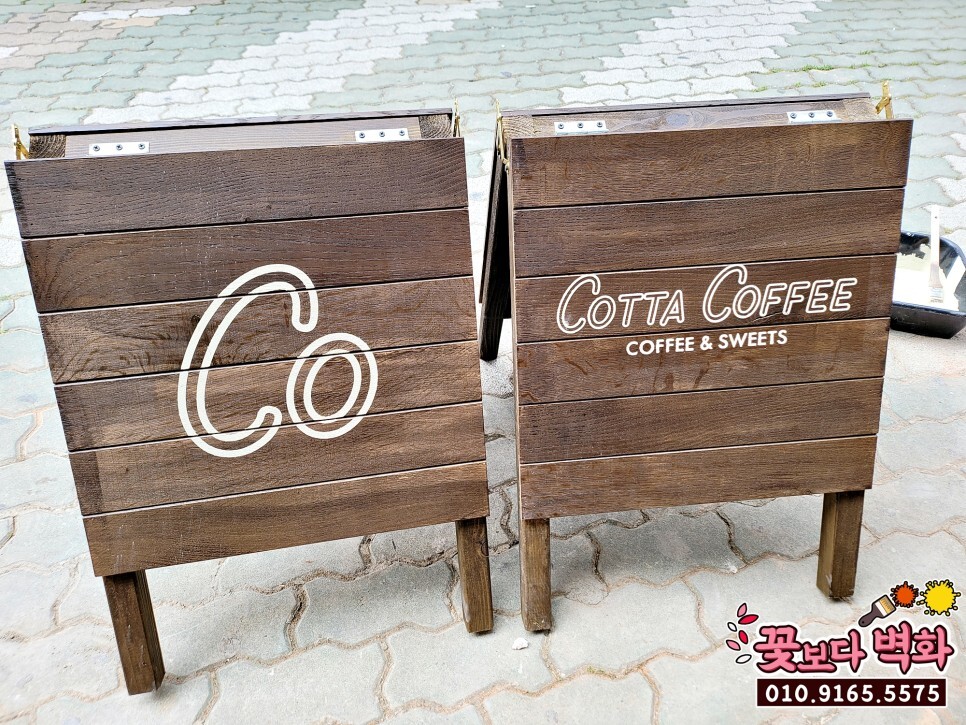 신상 카페 간판과 입간판 로고 스텐실 벽화입니다.