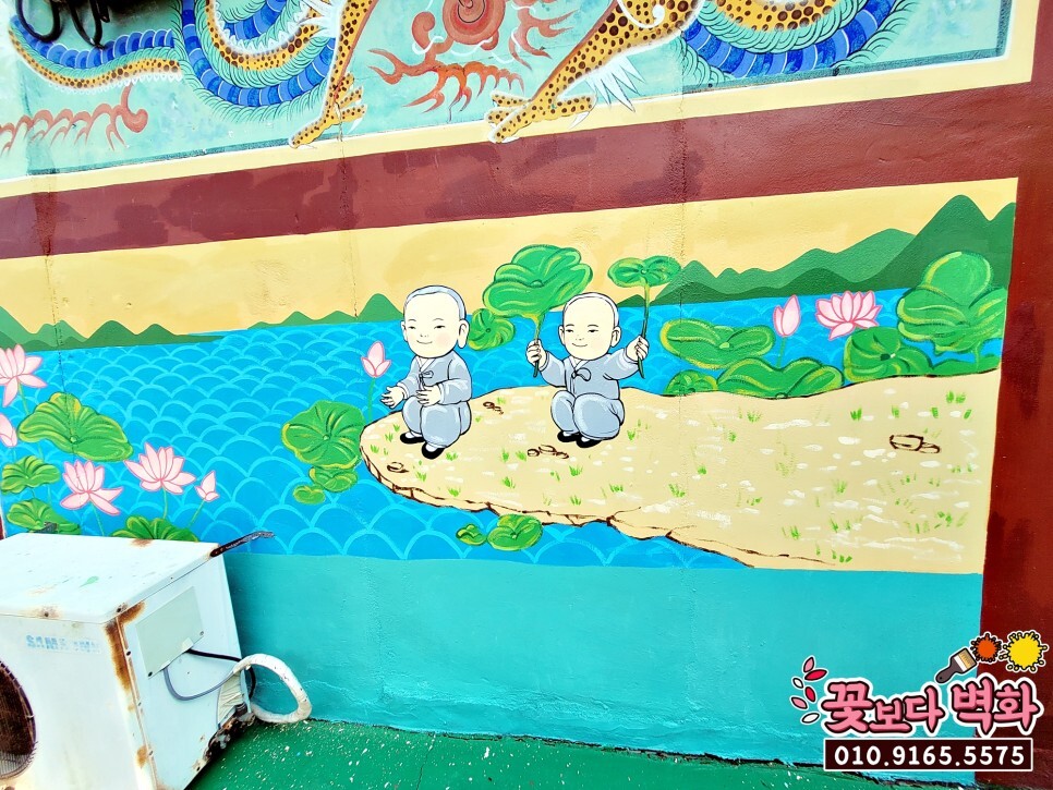 벽면 아래쪽에는 동자승과 연꽃들이 그려질 거예요~
