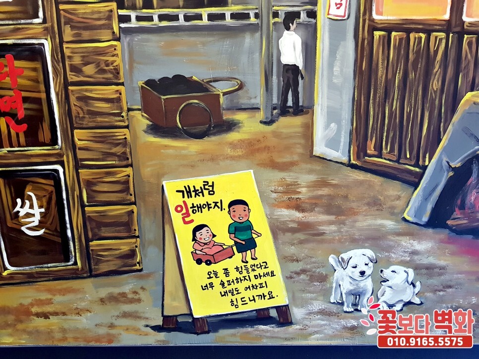 귀여운 강아지 두 마리로 벽화의 생동감을 불어 넣어주는데요 :)