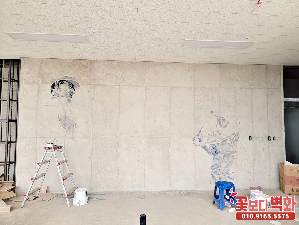 컬러가 들어가기 보다는 드로잉 느낌으로 벽화 작업을 하는게