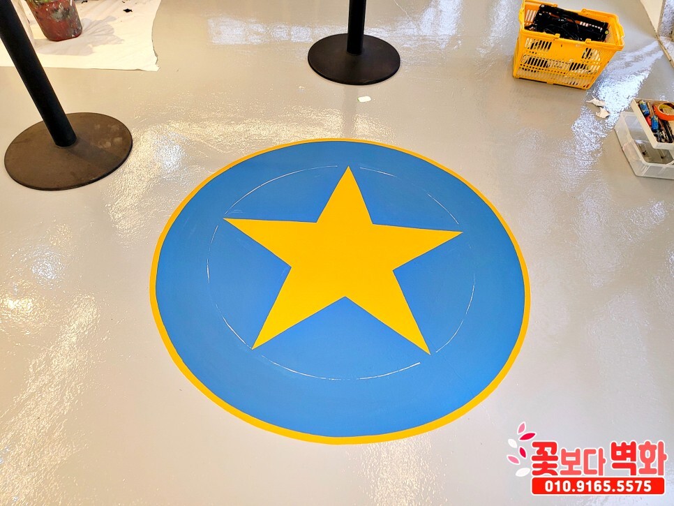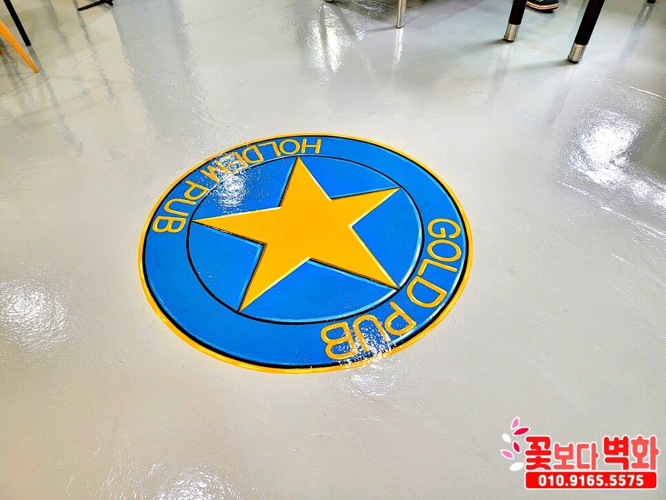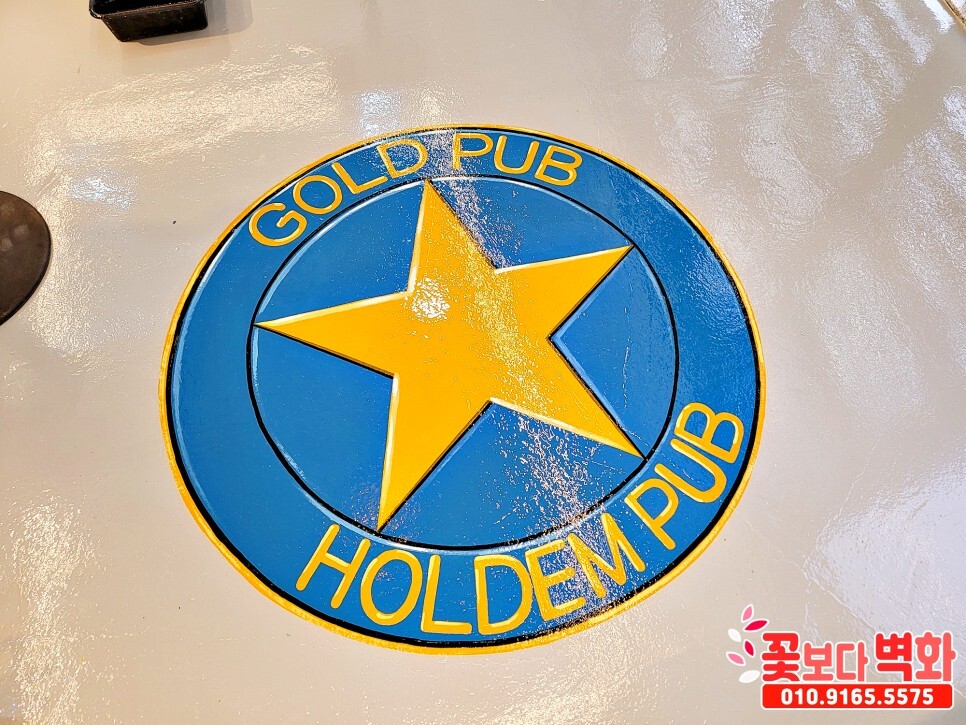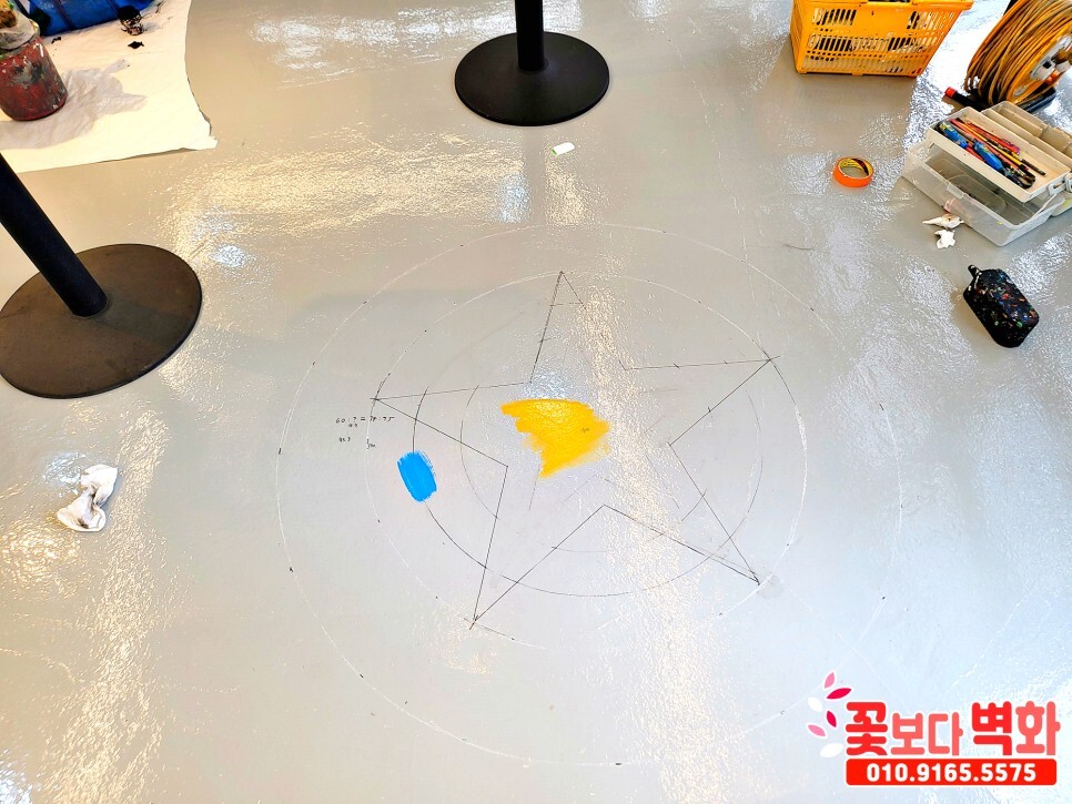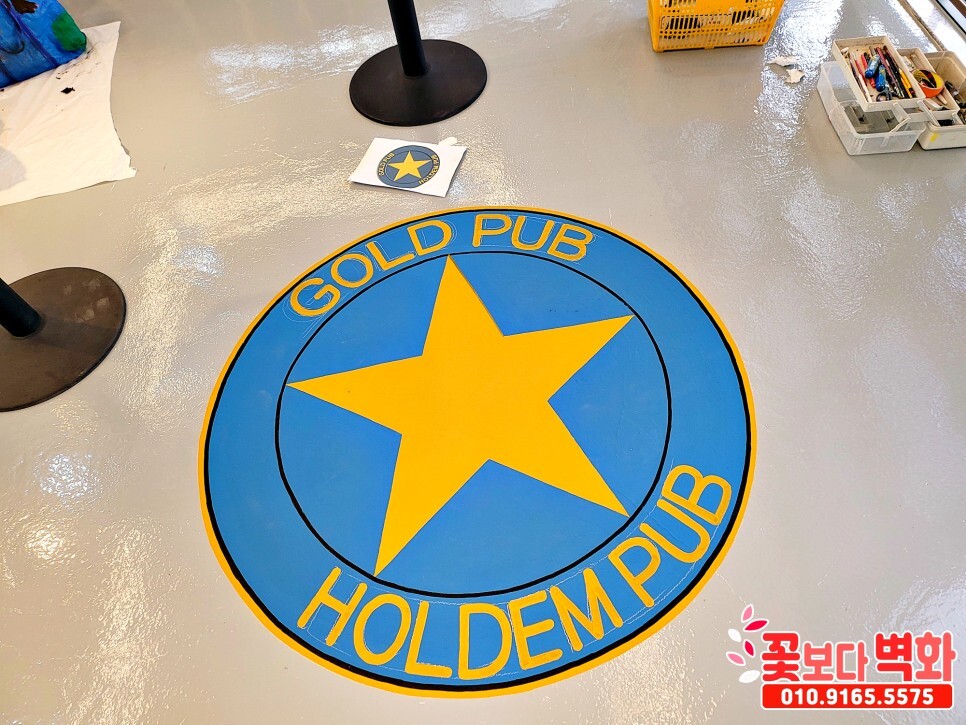 바닥엔 에폭시 작업이 마무리 상태에서 의뢰를 주셔서 로고를 그리고 에폭시 도포까지