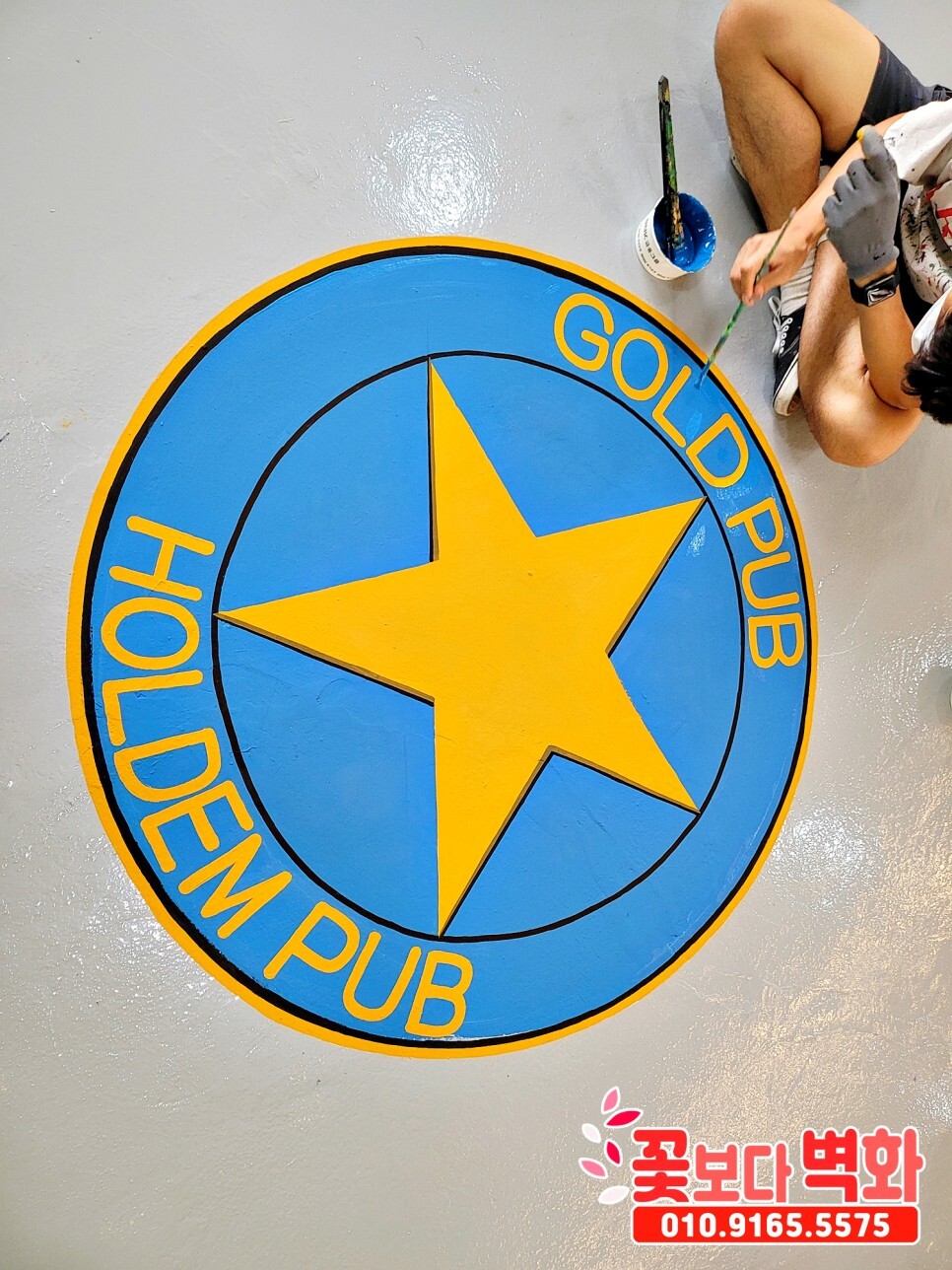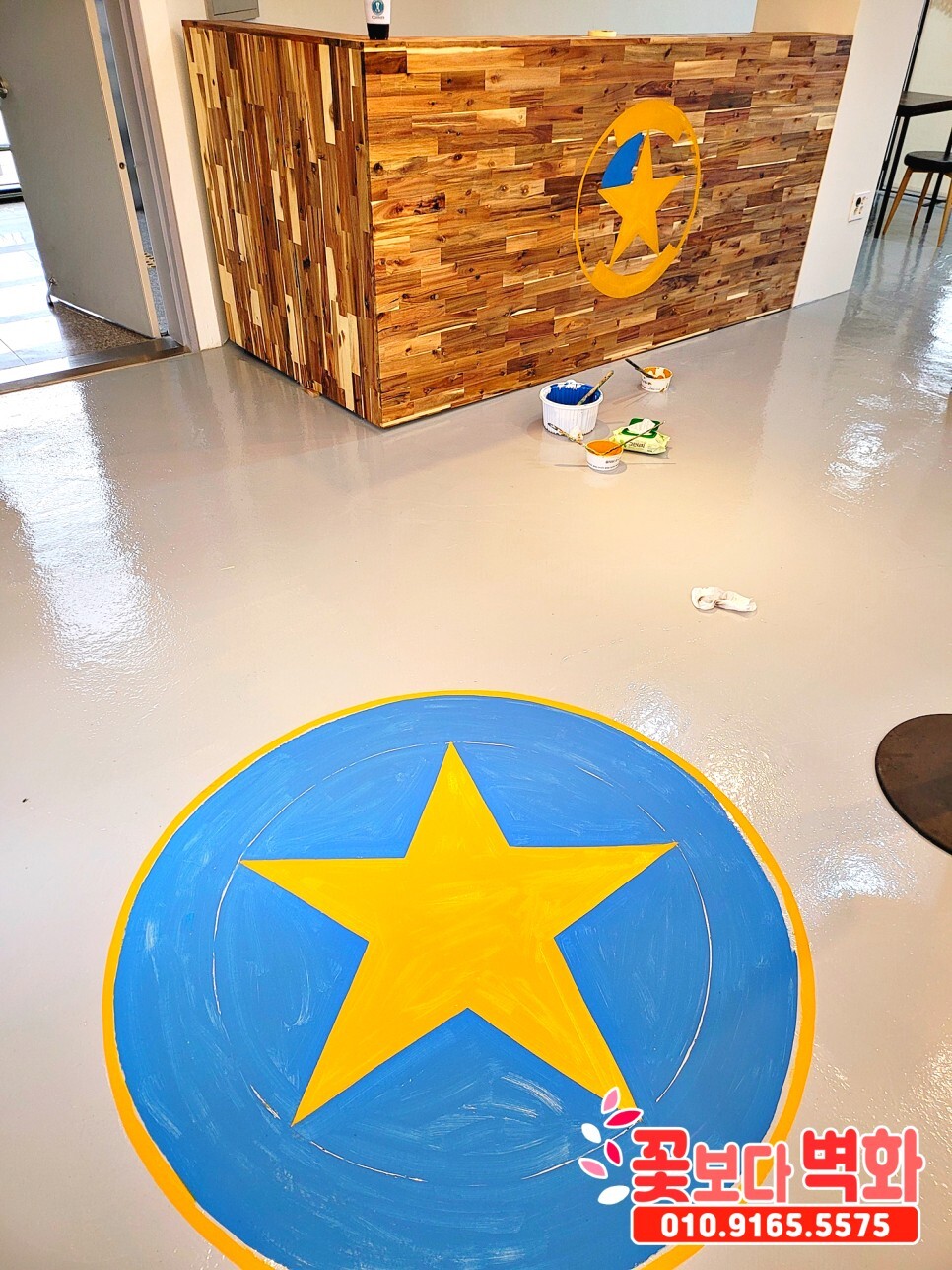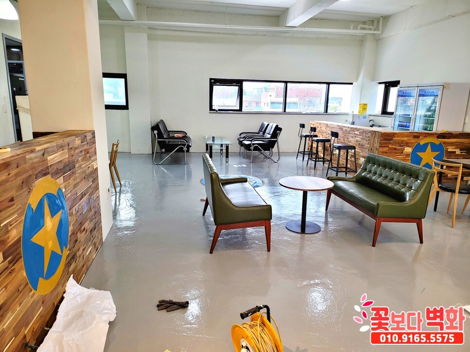 바닥엔 에폭시 작업이 마무리 상태에서 의뢰를 주셔서 로고를 그리고 에폭시 도포까지