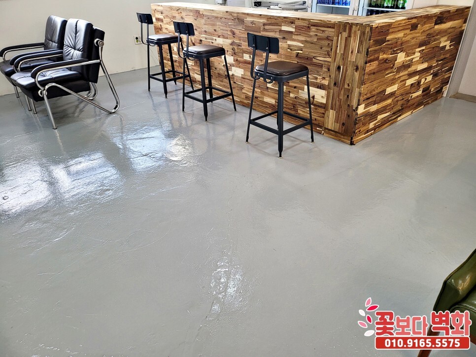 카운터와 안쪽 바 테이블에도 코팅까지 완료된 모습입니다 :)